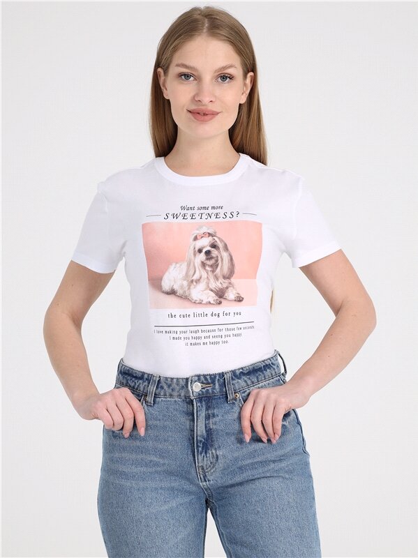 Футболка женская белая с принтом хлопок 100% Апрель 1ЖДФК3784001/1190/31/*/3256/*/*/* белый 88-164