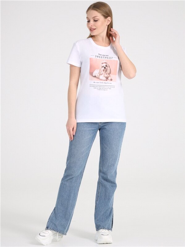 Футболка женская белая с принтом хлопок 100% Апрель 1ЖДФК3350001/ 1190/31/*/3350/*/*/* белый 84-164