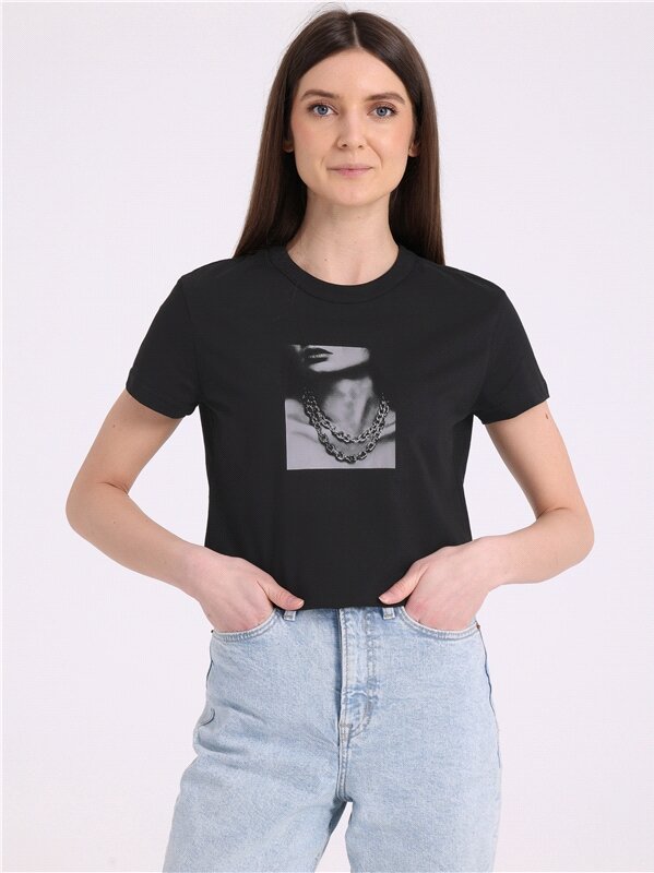 Футболка женская черная с принтом хлопок 100% Апрель 1ЖДФК3784001/1190/599/*/3231/*/*/* черный,белый 100-164