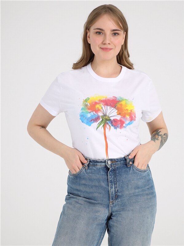 Футболка женская белая с принтом хлопок 100% Апрель 1ЖДФК2657001/1190/31/*/2967/*/*/*/1 белый,мультиколор 100-164
