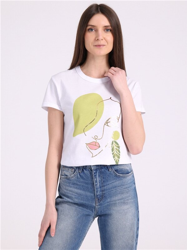 Футболка женская белая с принтом хлопок 100% Апрель 1ЖДФК2657001/1190/31/*/3418/*/*/* белый,зеленый 96-164