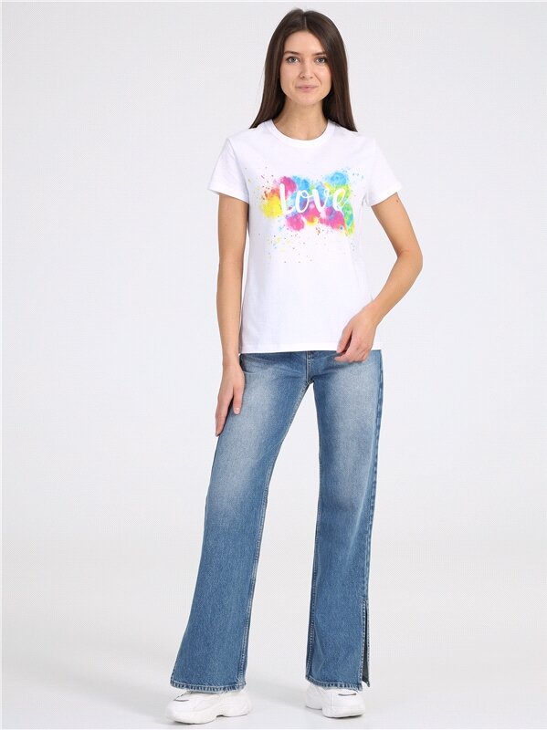 Футболка женская белая с принтом хлопок 100% Апрель 1ЖДФК2657001/1190/31/*/2967/*/*/*/1 белый,мультиколор 100-164