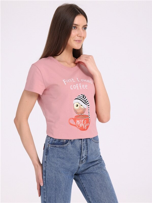 Купить Футболка женская с принтом хлопок 100% Апрель 1ЖДФК4252001/1354/2408/*/2904/*/*/* розовый 84-164