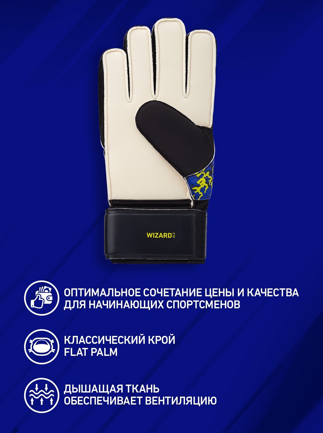 Перчатки вратарские Jögel ONE Wizard AL3 Flat, голубой, р-р 9