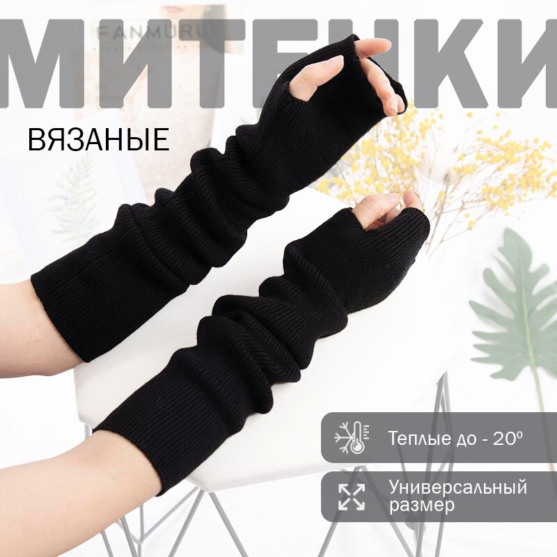 Митенки теплые Черные. Перчатки длинные без пальцев. Митенки - рукава зимние, рукавицы. Шерстяные митенки. Перчатки без пальцев женские. интересное: