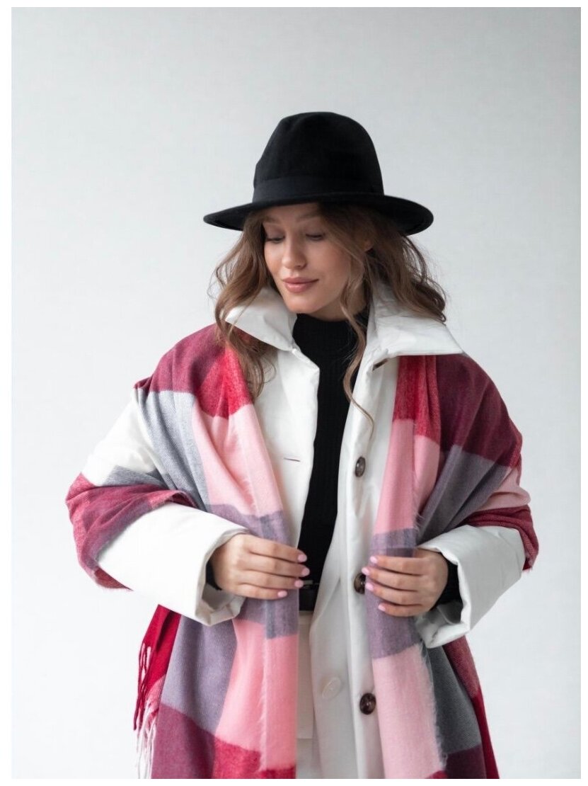 Зимний шарф женский, палантин женский тёплый 200*70 см, платок для храма пурпурный