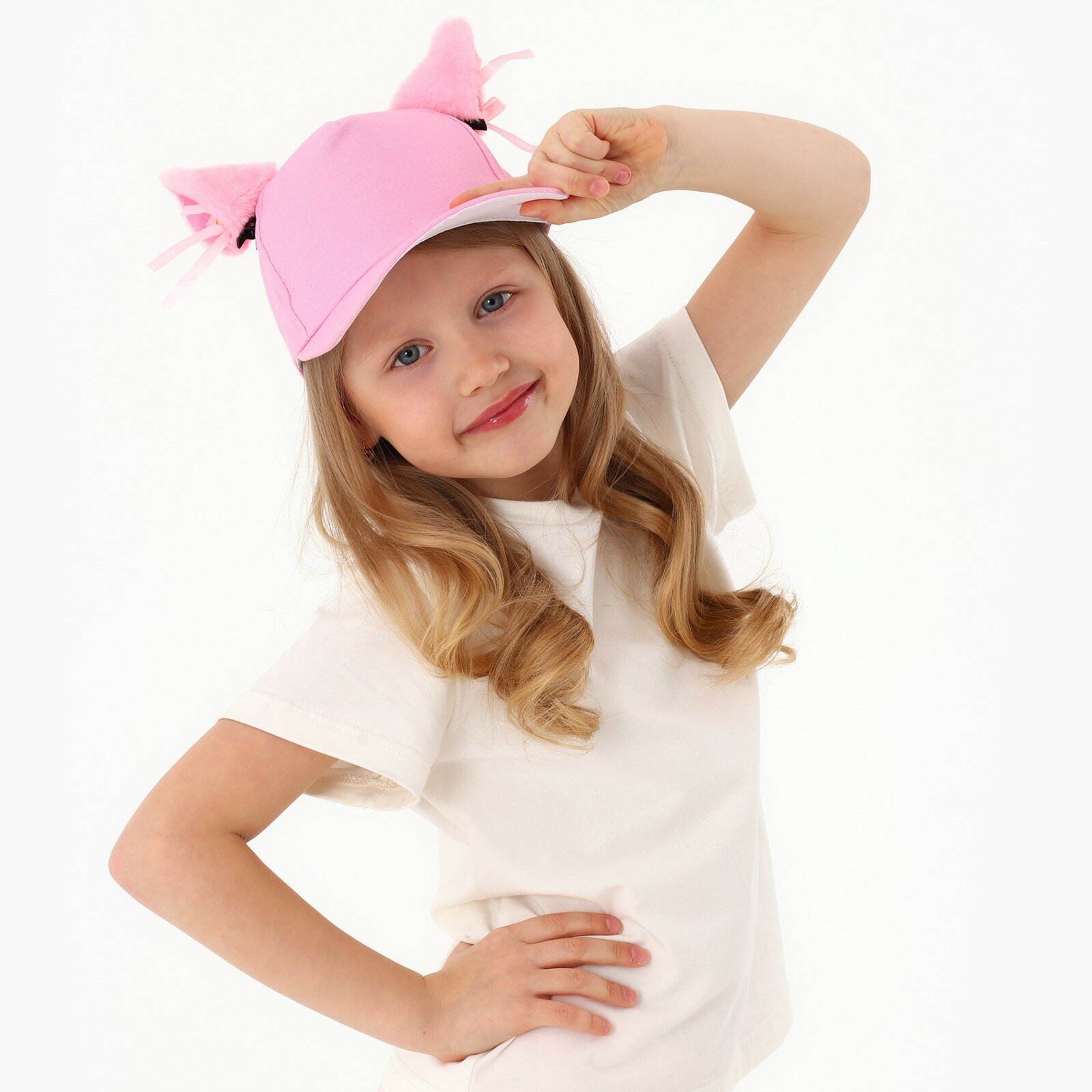 Купить Кепка детская для девочки "Кошечка" с ушками, цвет розовый, р-р 52-54, 5-7 лет