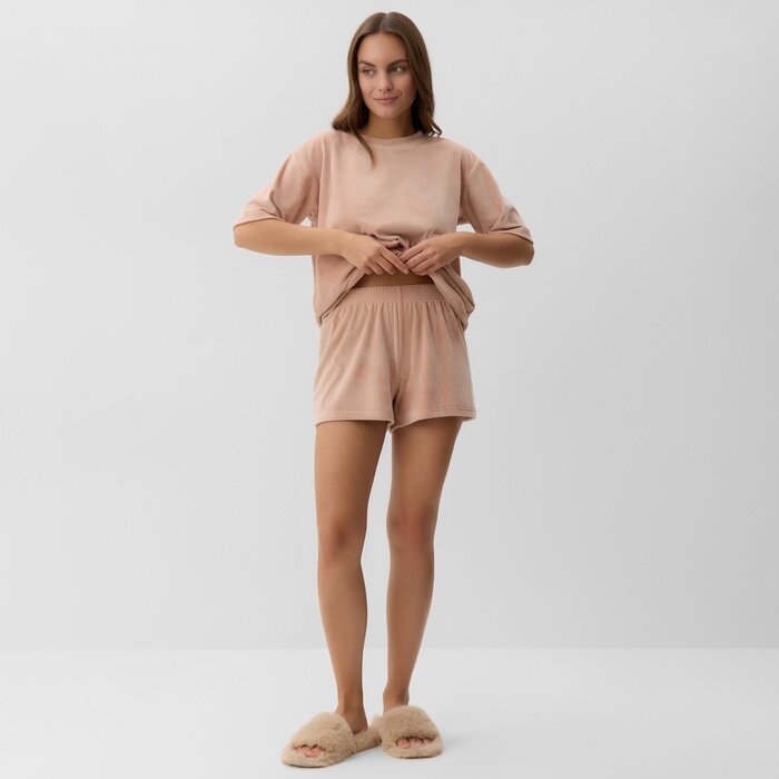 Костюм женский (футболка и шорты) KAFTAN Plushy р. 40-42, бежевый