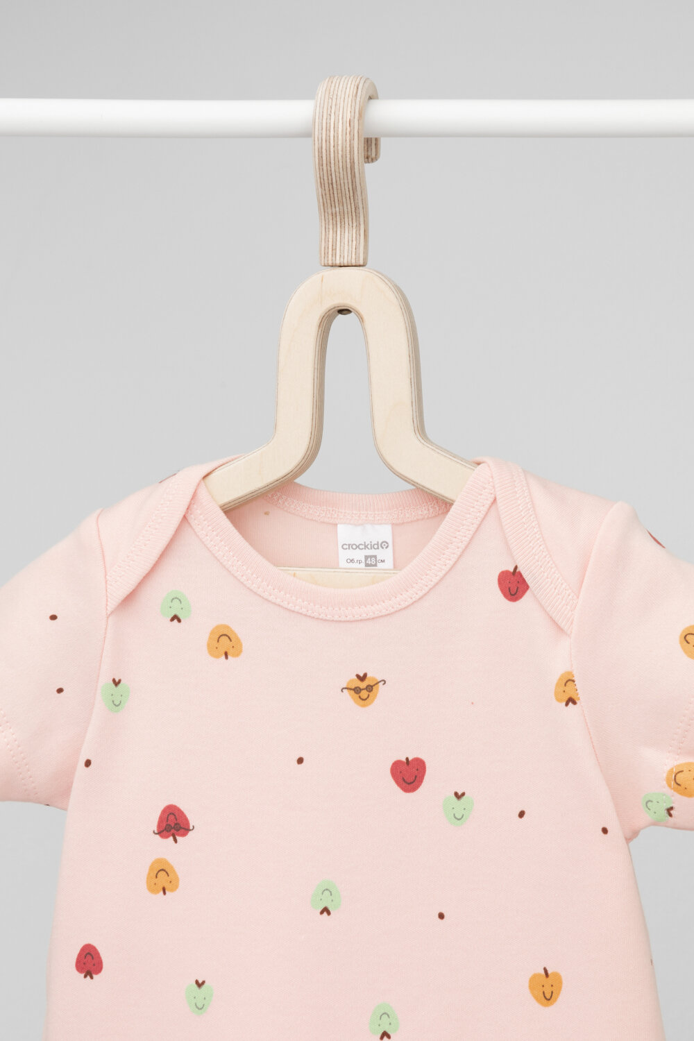 Комбинезон-слип для девочки из натурального хлопка, Crockid К 6485/бежево-розовый,яблочки р 44/68