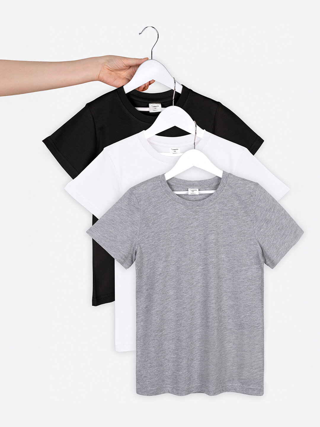 Футболка детская набор 3 шт хлопок HappyFox HF5501N3 серыймеланж.белый.черный 146
