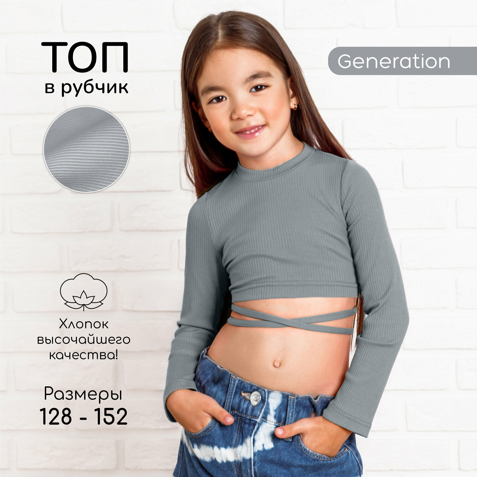 Топ для девочки с длинными рукавами на завязках Amarobaby Generation, серый, размер 134