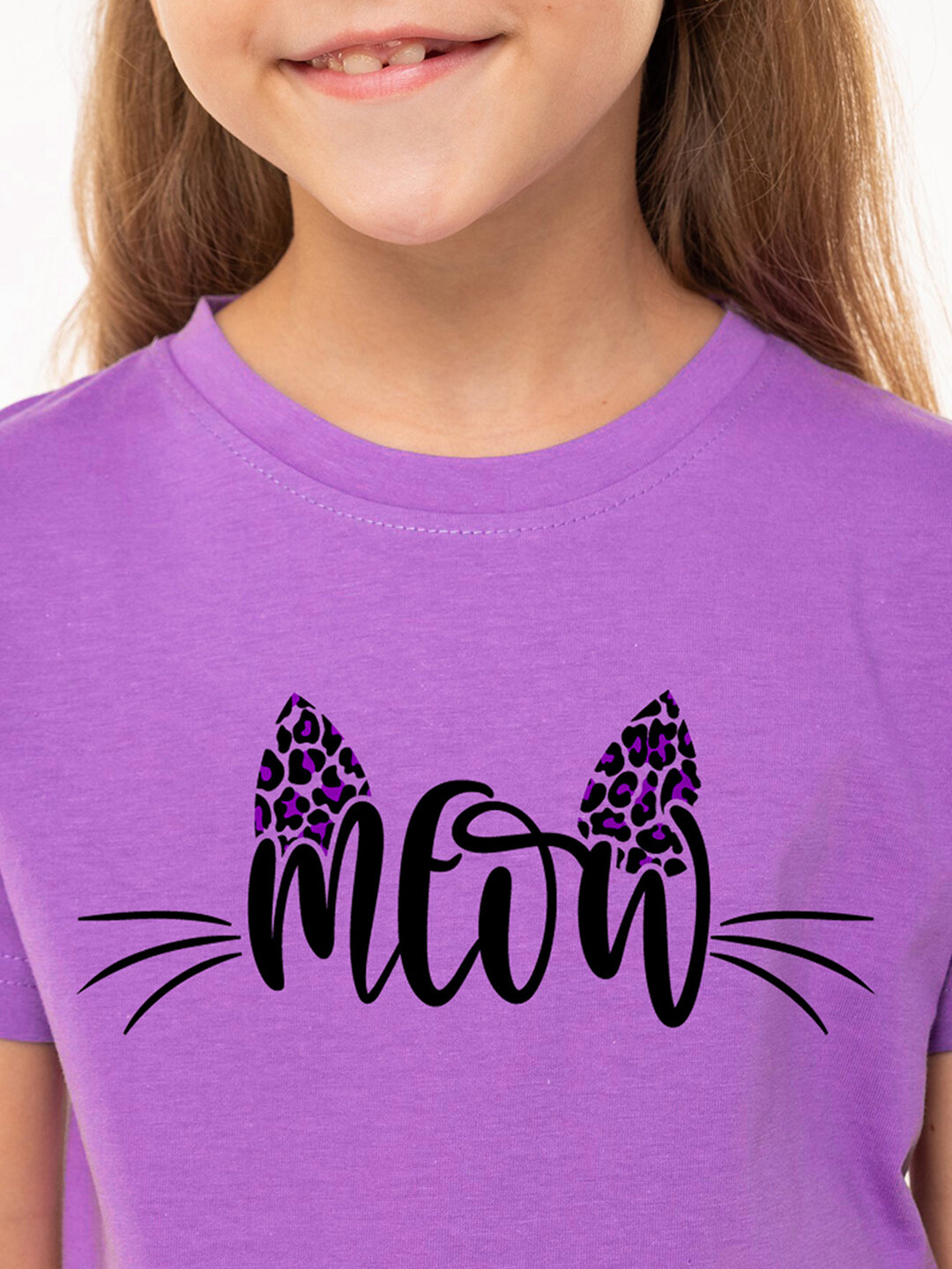 Футболка Happyfox с принтом хлопковая HF66031D meow.лаванда 134