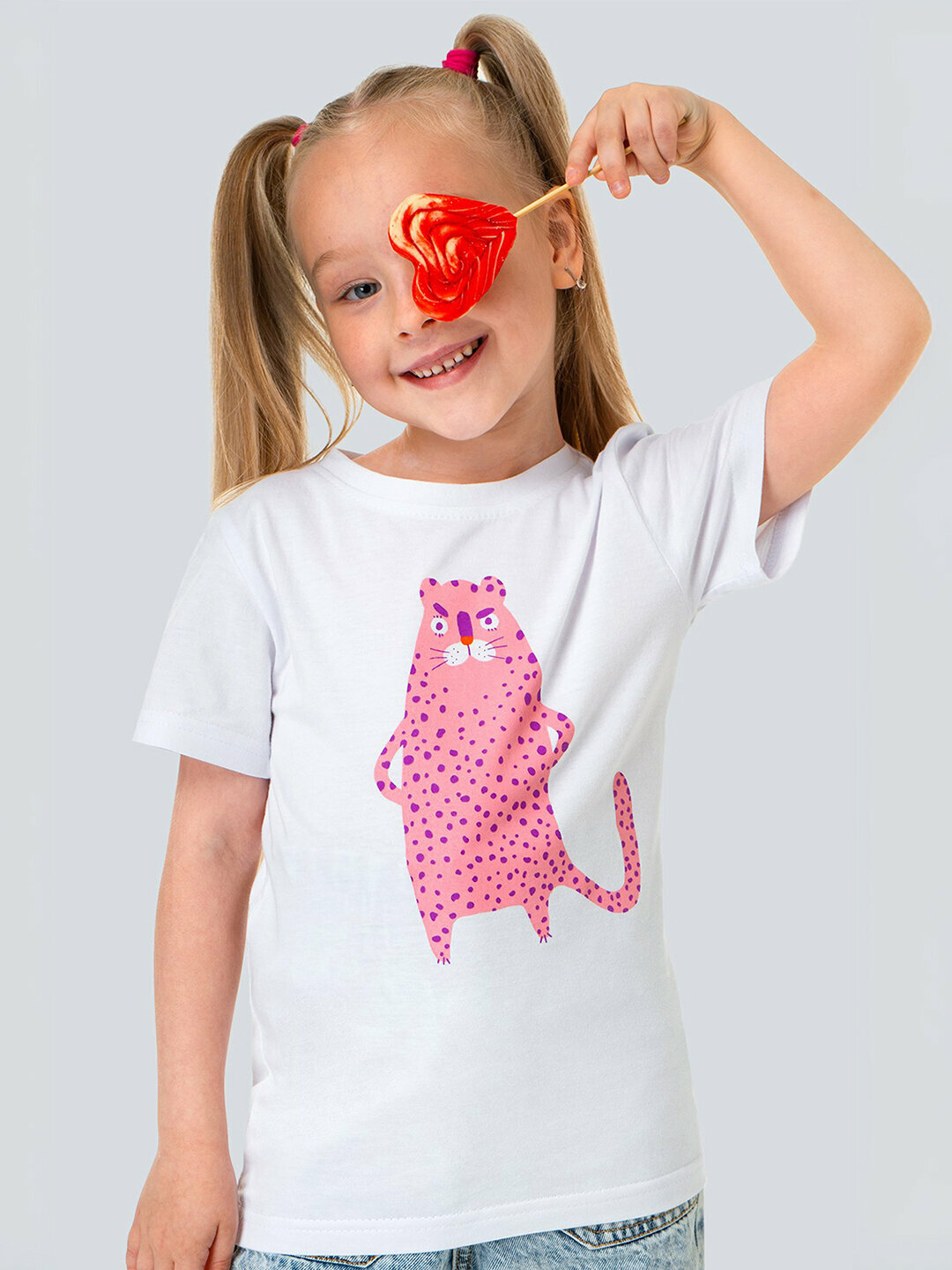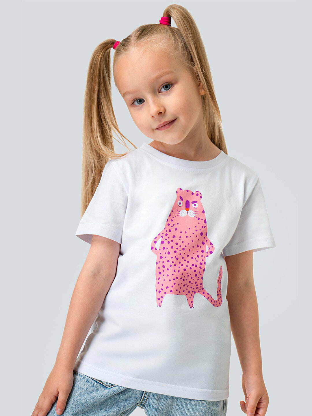 Футболка для девочки с принтом 100% хлопок HappyFox HF66031D леопард.белый 116