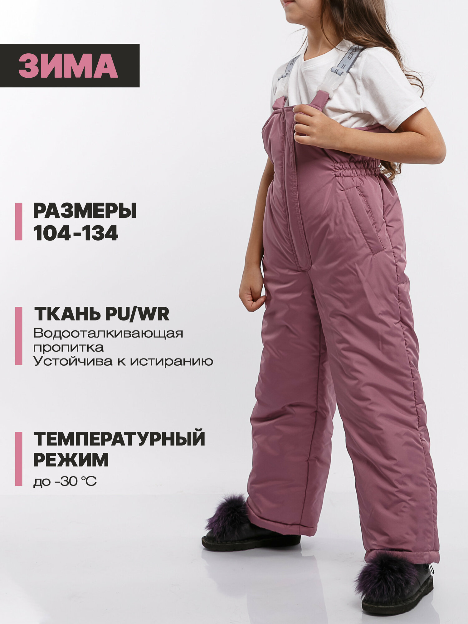 Зиминий утепленный полукомбинезон для девочки непромокаемый из мембраны на резинке с бретелями KAYSAROW Бетси фламинго рост 128