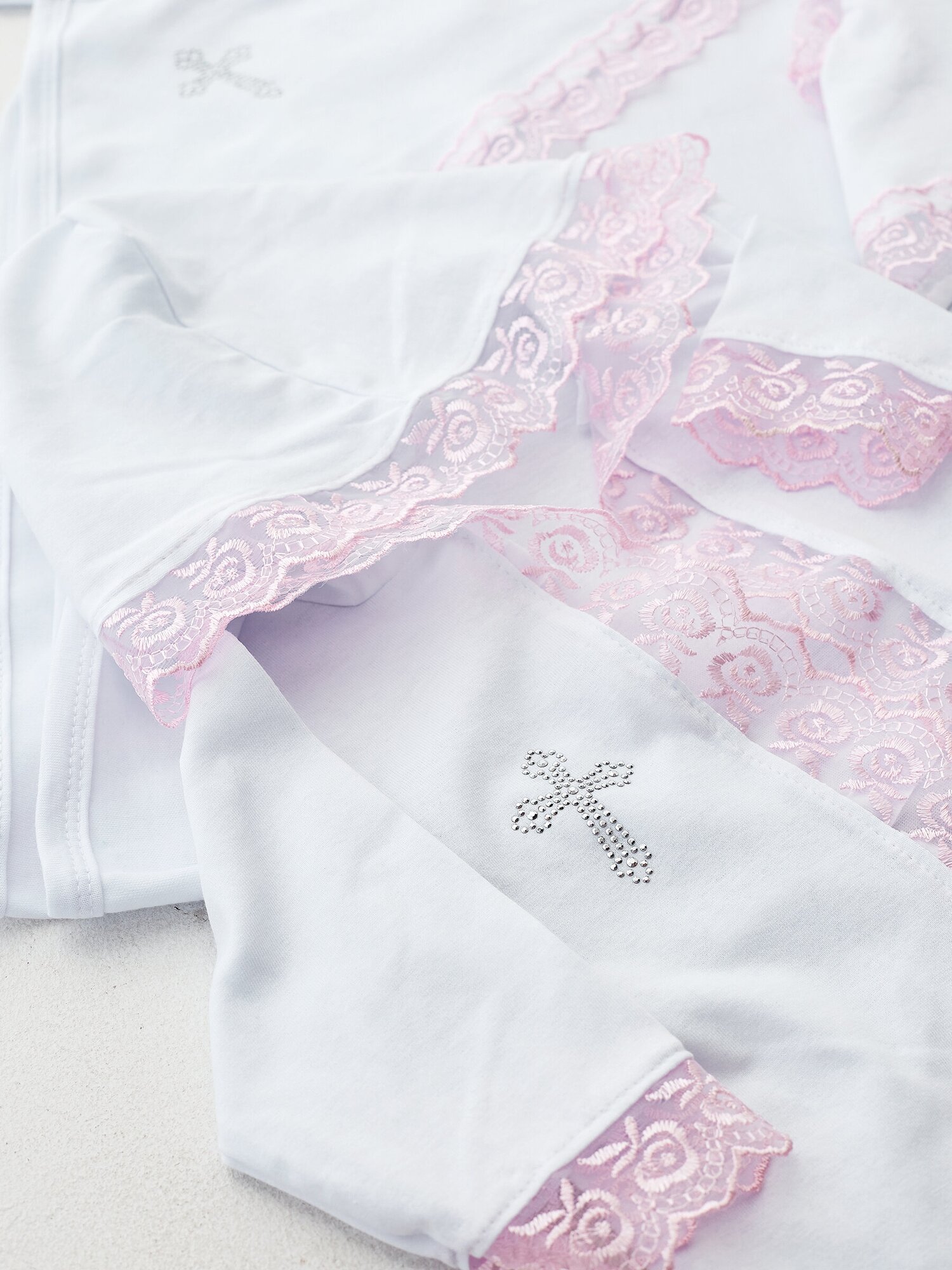 Крестильный комплект Дети в цвете, размер 22-68, белый/розовый