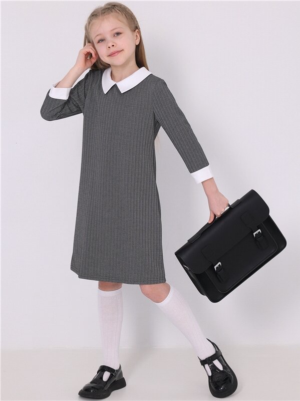 Платье школьное серое с воротником костюмный жаккард Апрель 1ДПД868176/989/*/5305/*/*/*/* черный,серый,белый 76-146