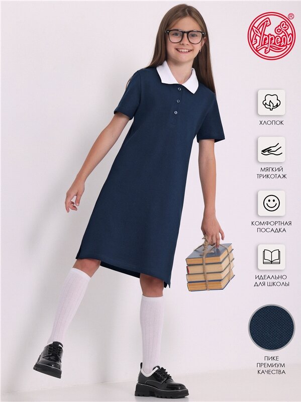 Платье синее с воротником поло школьная форма Апрель 1ДПК4306090/1386/2130/*/*/*/*/* синий,белый 80-152