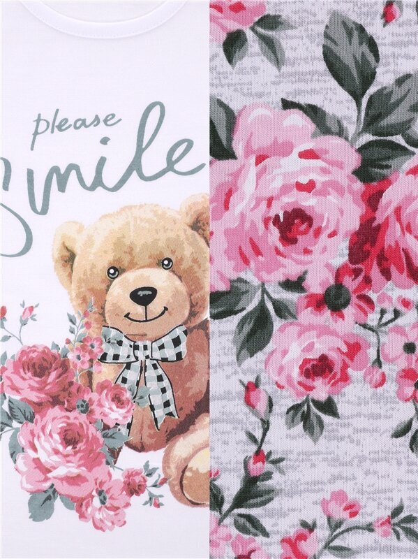 Футболка для девочки с принтом набор 2 шт. хлопок 100% Апрель 2ДДФК5731001н/1315/*/5246/3381/*/*/* серый,розовый 54-104