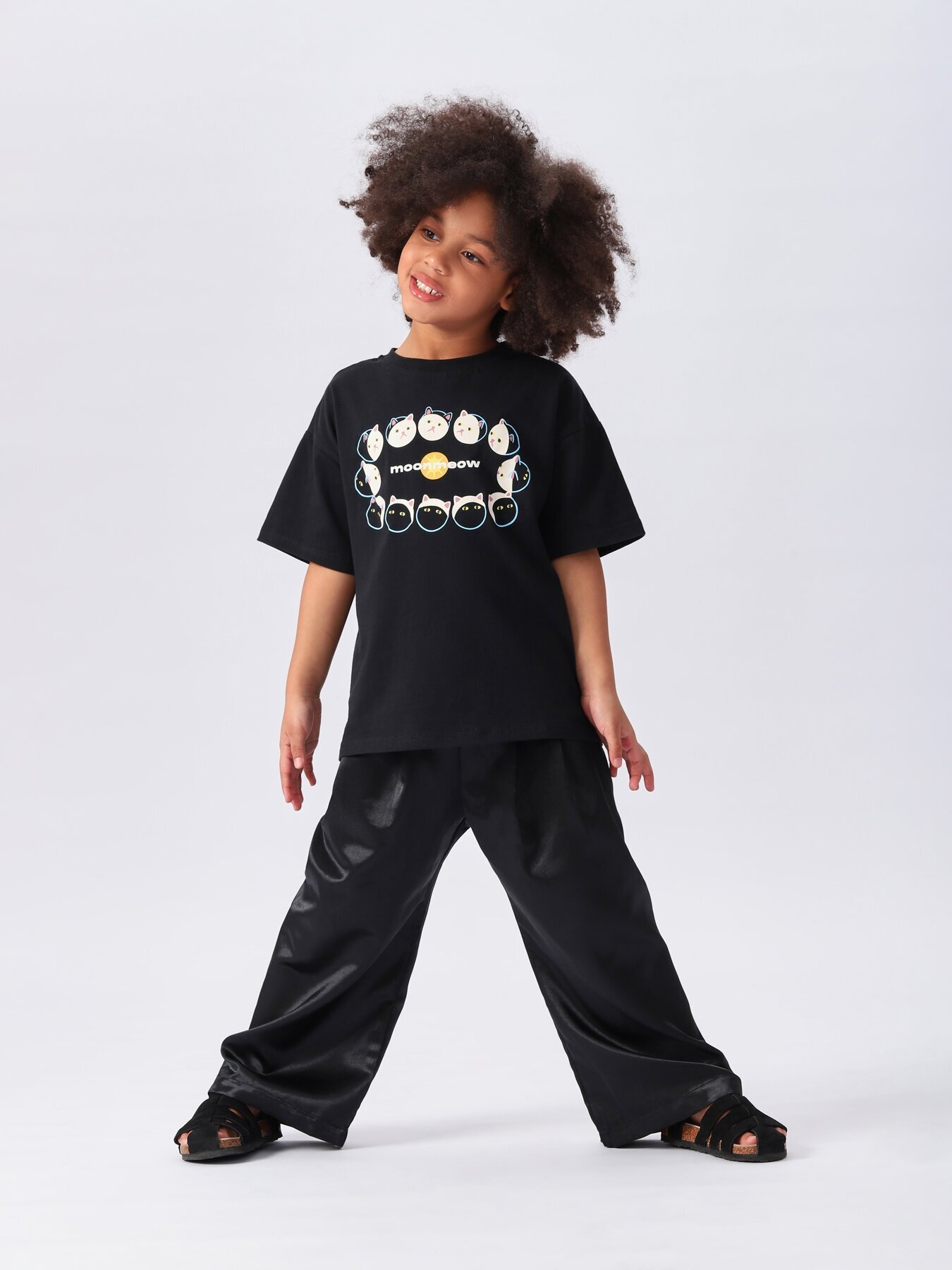 Купить 88170, Брюки детские Happy Baby свободные штаны атласные, штаны для мальчика и девочки, на лето, штаны на резиночке, черные, размер 110-116