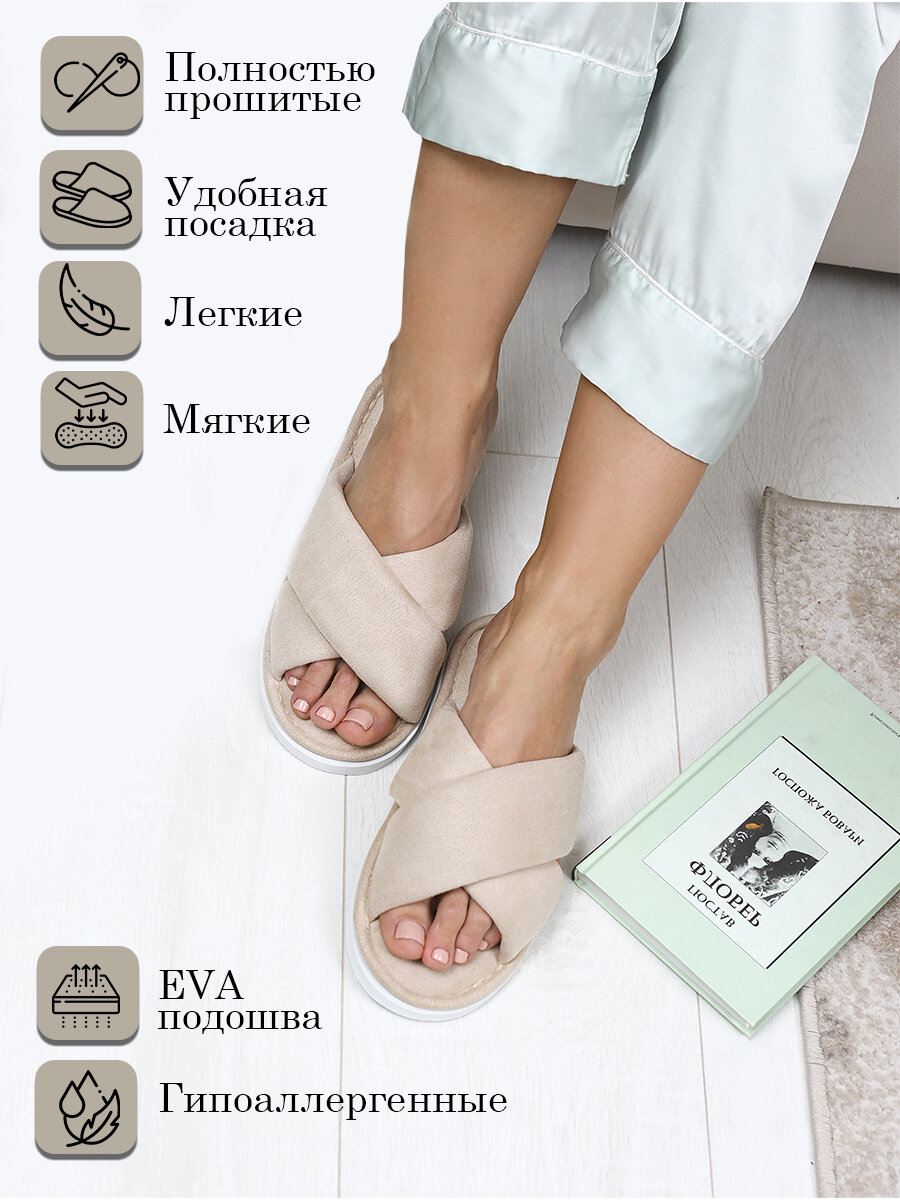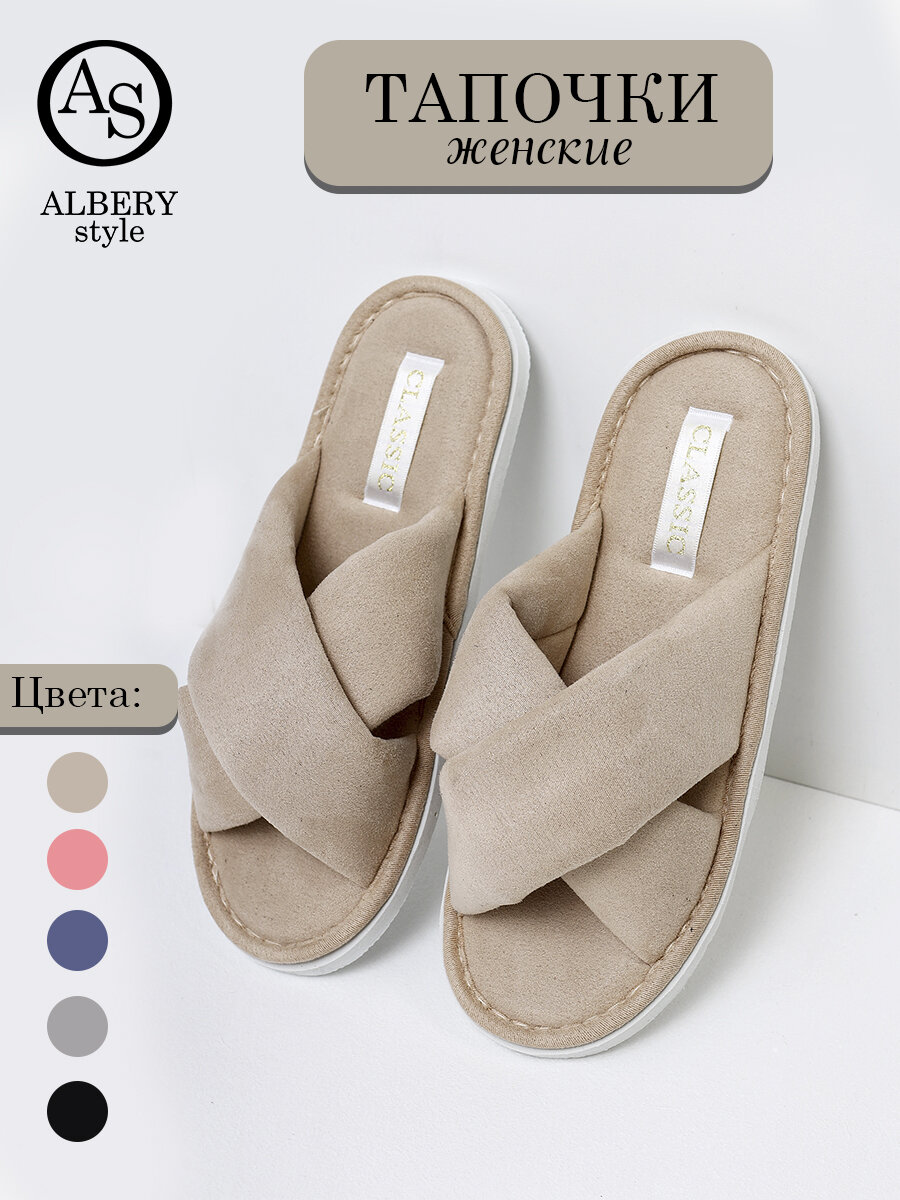 Тапочки домашние женские ALBERY,бежевые,открытые,размер 38-39