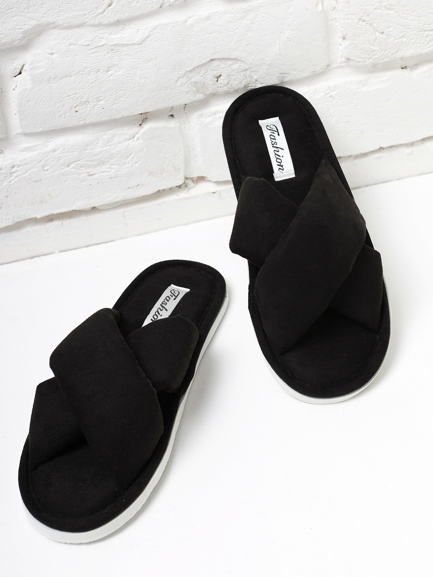 Тапочки домашние женские ALBERY,черные,открытые,размер 38-39