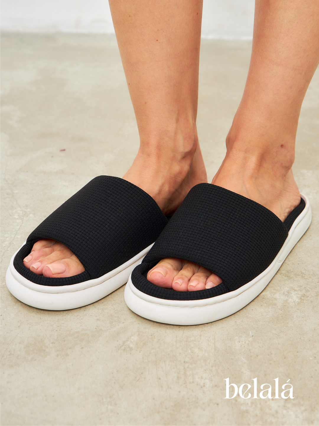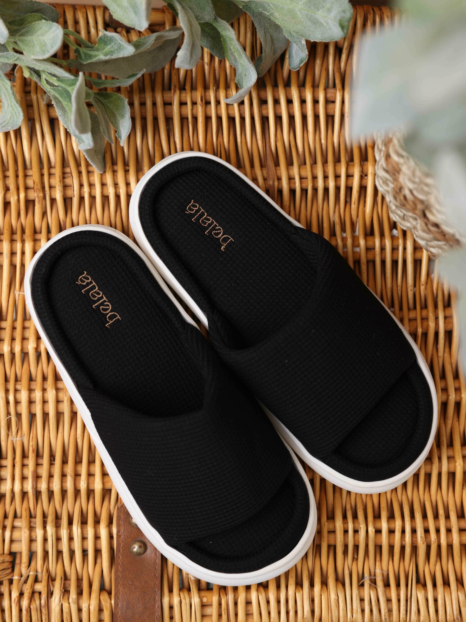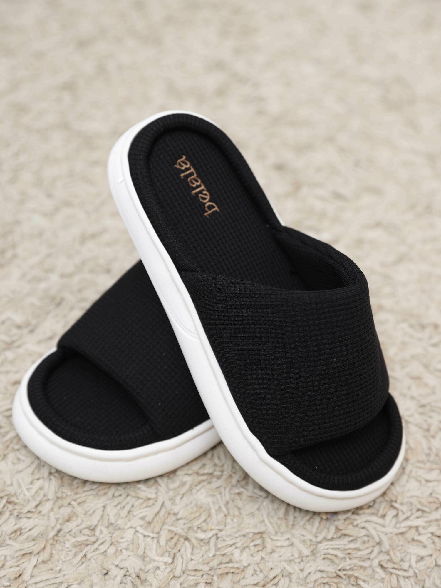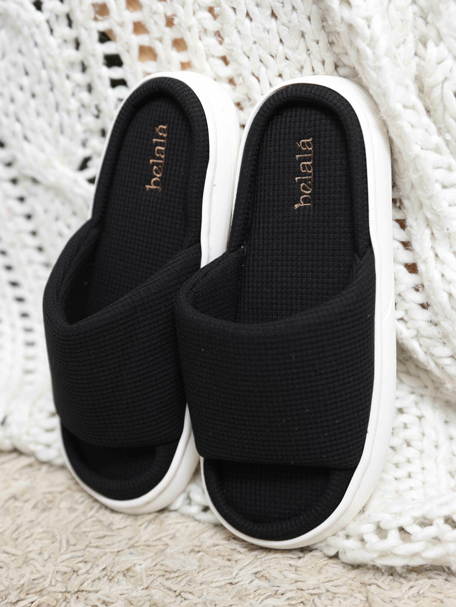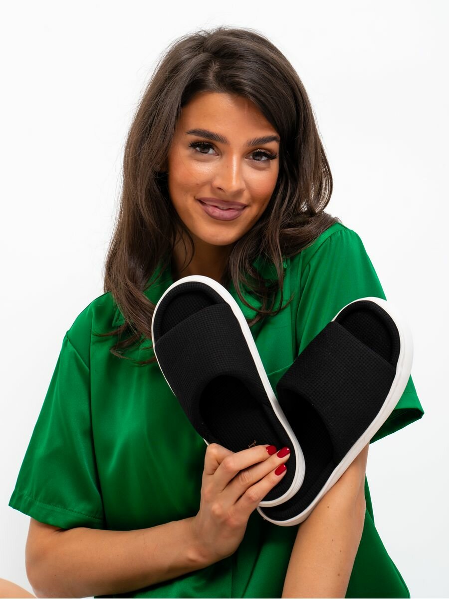 Тапочки Belala Тапочки домашние женские тапки хлопковые комнатные открытые для дома из хлопка вафельные, размер 36/37, черный