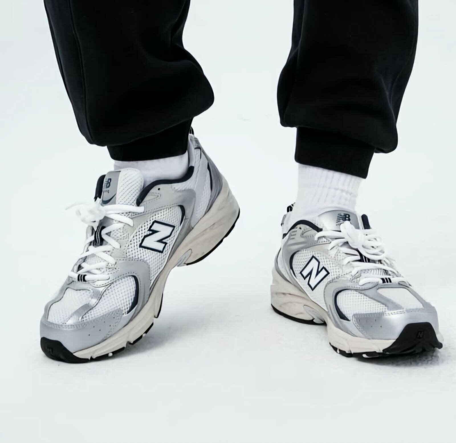 Кроссовки New Balance "530" - белые с серебряными вставками 44.5 eu