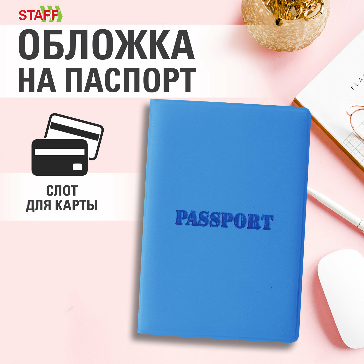 Купить Обложка для паспорта Staff мягкий полиуретан, "Passport", голубая