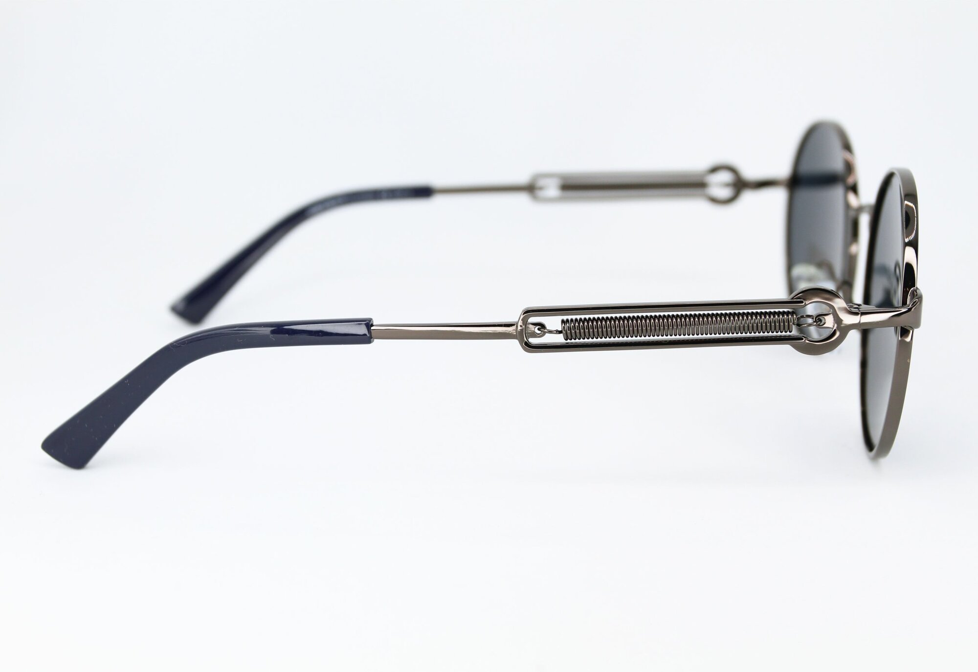 Купить Очки солнцезащитные MATRIX (МТ8620 C2-182) круглые, тишейды, стимпанк, оправа и дужки глянцевый темно-серый металл, линзы серо-синие, поляризация, UV-защита cat.3, на дужках вставки с пружинками + мягкий чехол + футляр и салфетка в подарок