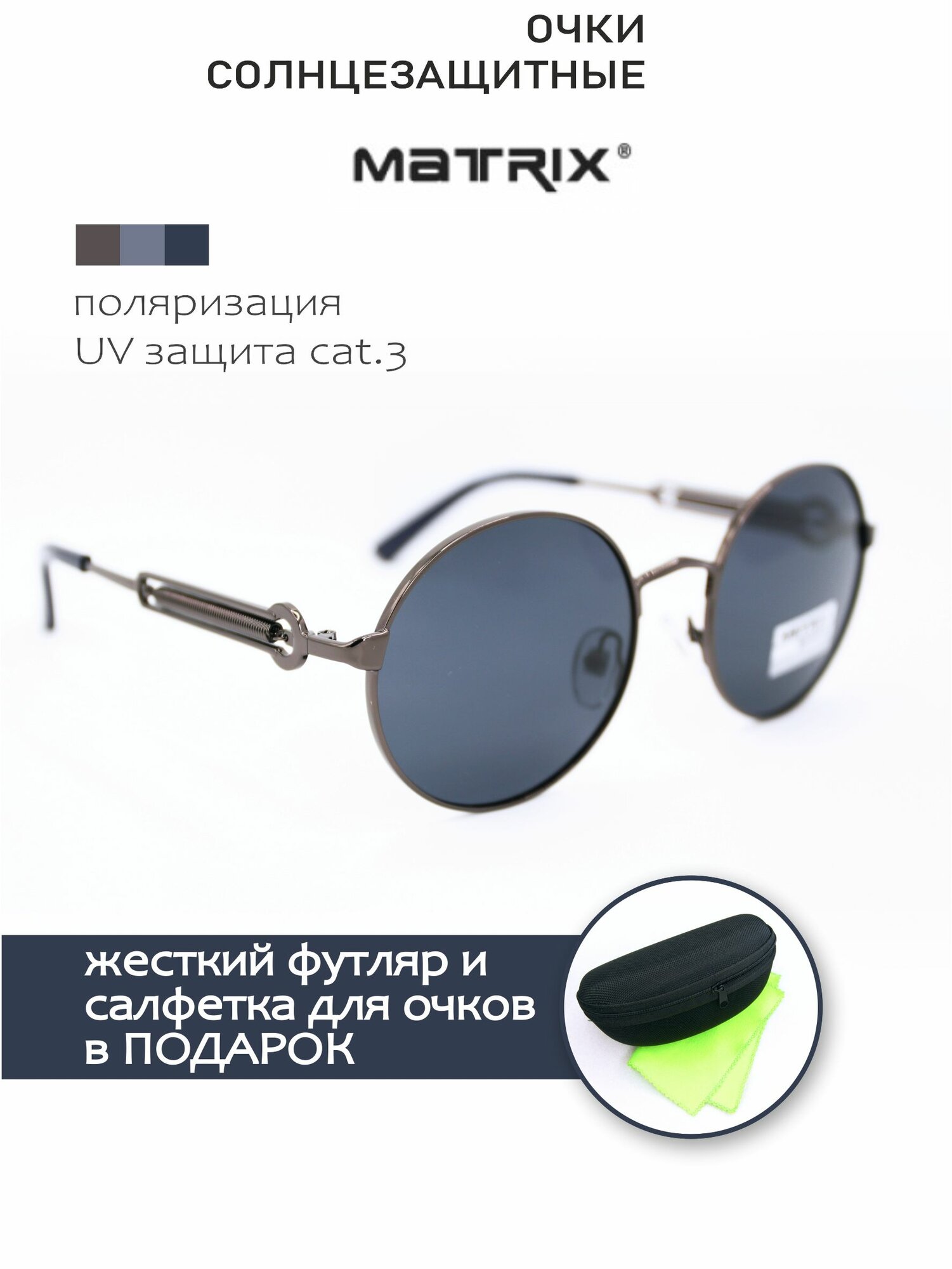 Очки солнцезащитные MATRIX (МТ8620 C97-P55) круглые, тишейды, стимпанк, оправа и дужки серый металл, линзы градиент: чернильно-черный в серый, поляризация, UV-защита cat.3, на дужках вставки с пружинками + мягкий чехол +жесткий футляр и салфетка в подарок