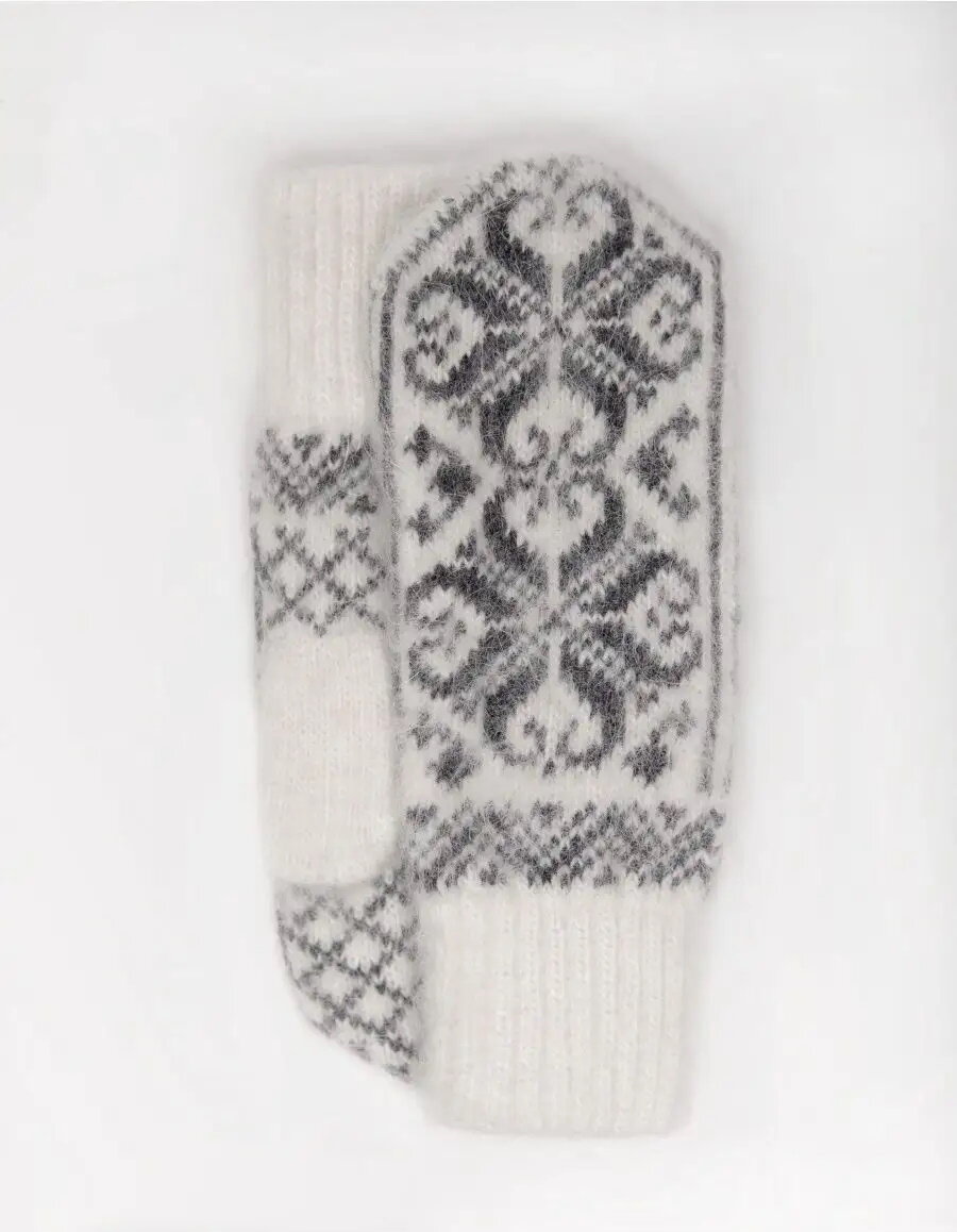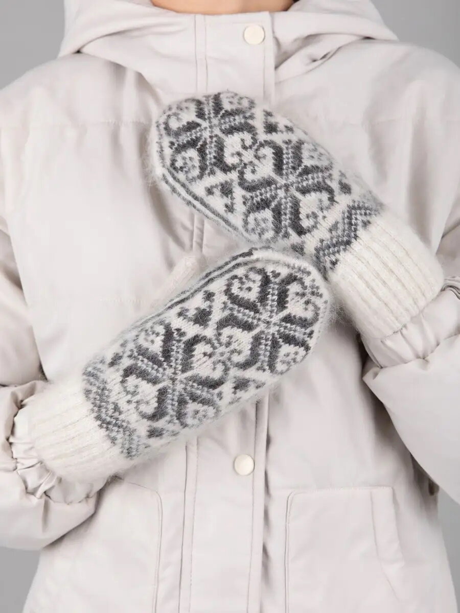 Шерстяные варежки женские, 100 % козья шерсть, скандинавский орнамент, серый цвет, 6-8 размер
