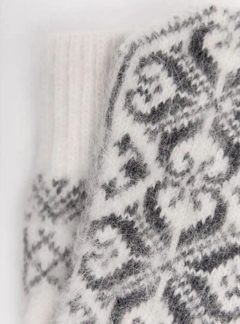 Шерстяные варежки женские, 100 % козья шерсть, скандинавский орнамент с Северным оленем, серый-белый цвет 6-8 размер