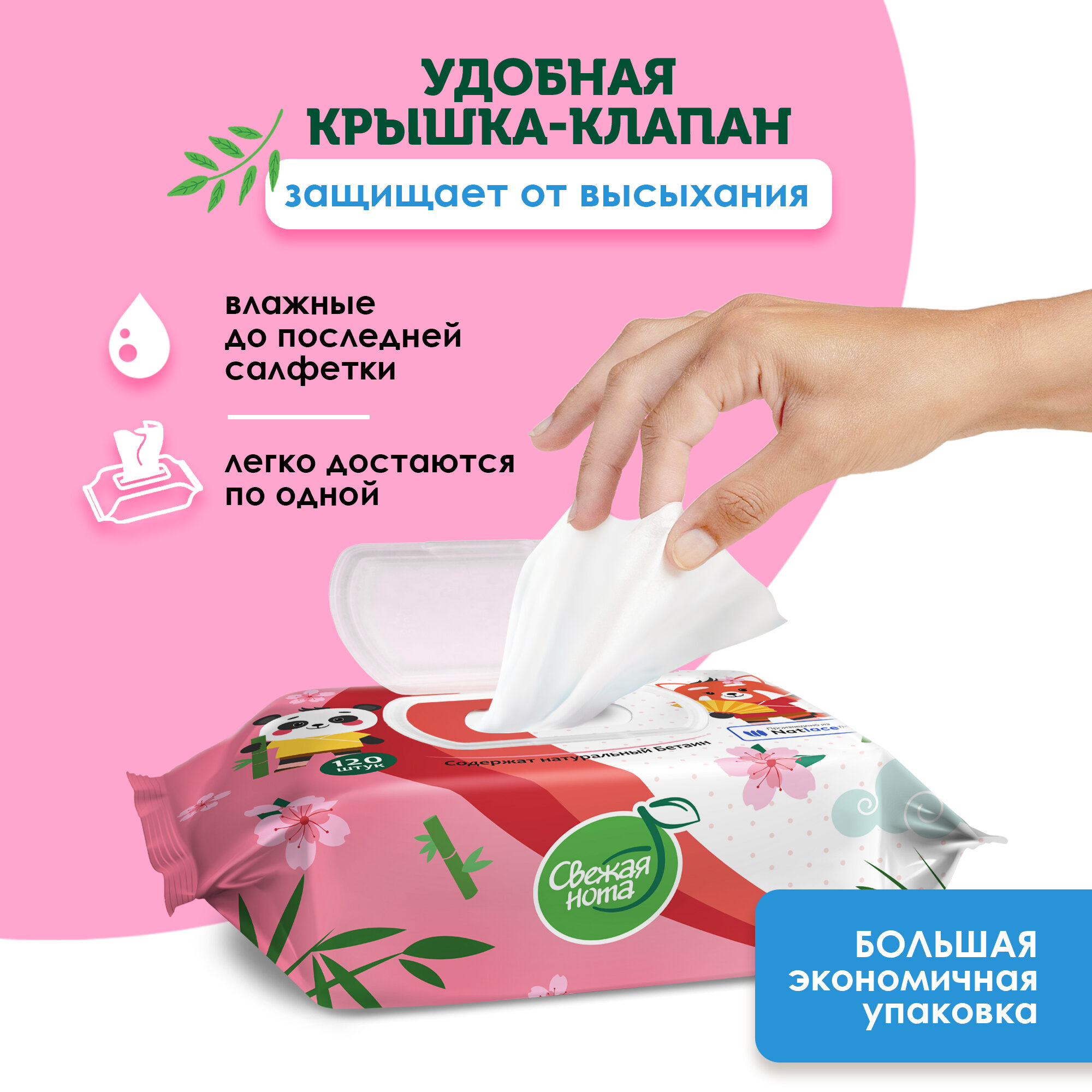 Свежая нота Влажные салфетки детские Увлажняющие с натуральным Бетаином с клапаном, 720 шт. (120х6) интересное: