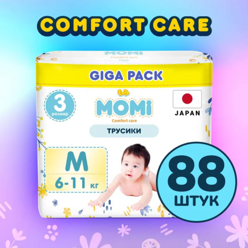Купить Подгузники-трусики Momi Comfort Care M (6-11 кг) GIGA, 88 шт