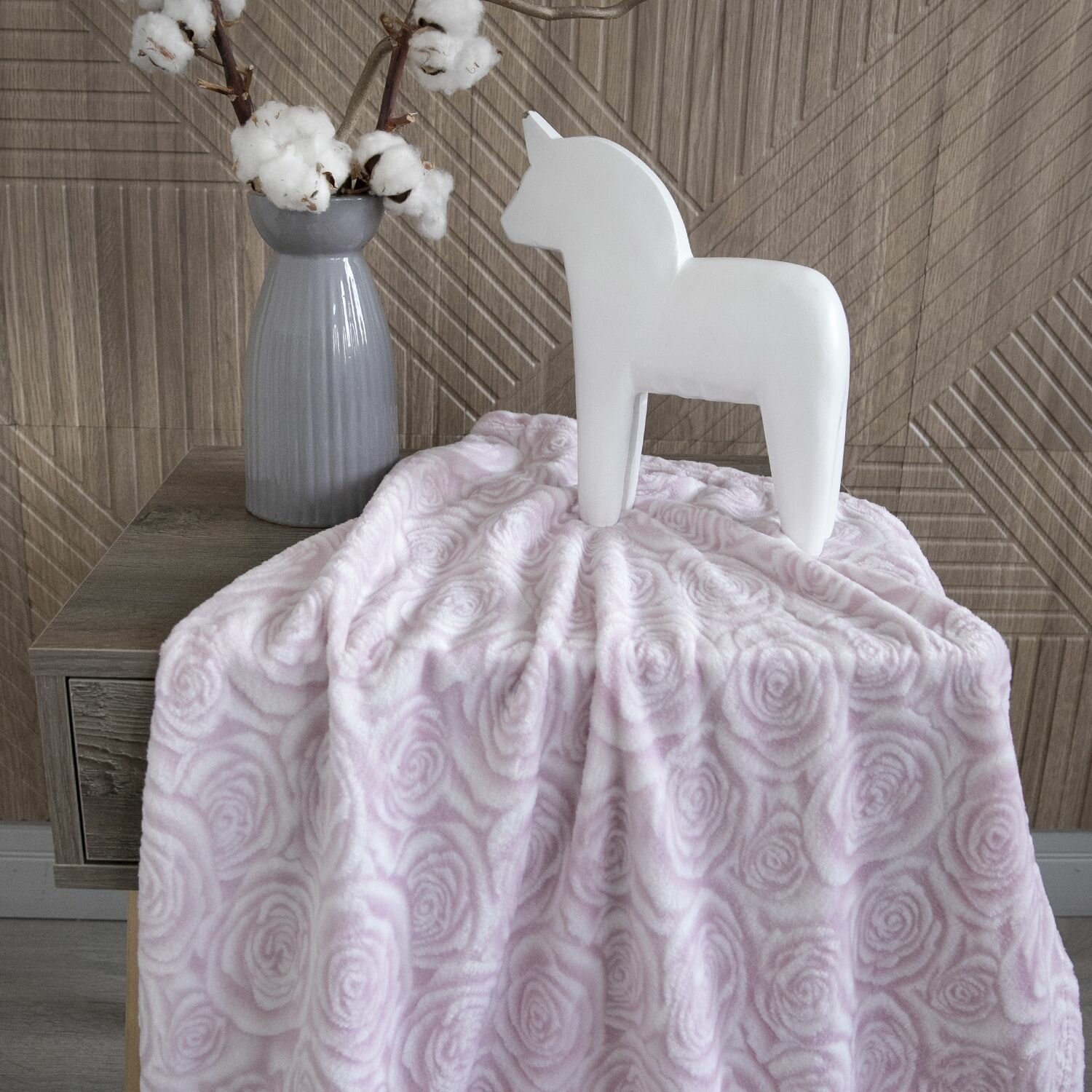 Плед для новорожденного 75х100 пушистый детский в кроватку коляску , розы серый