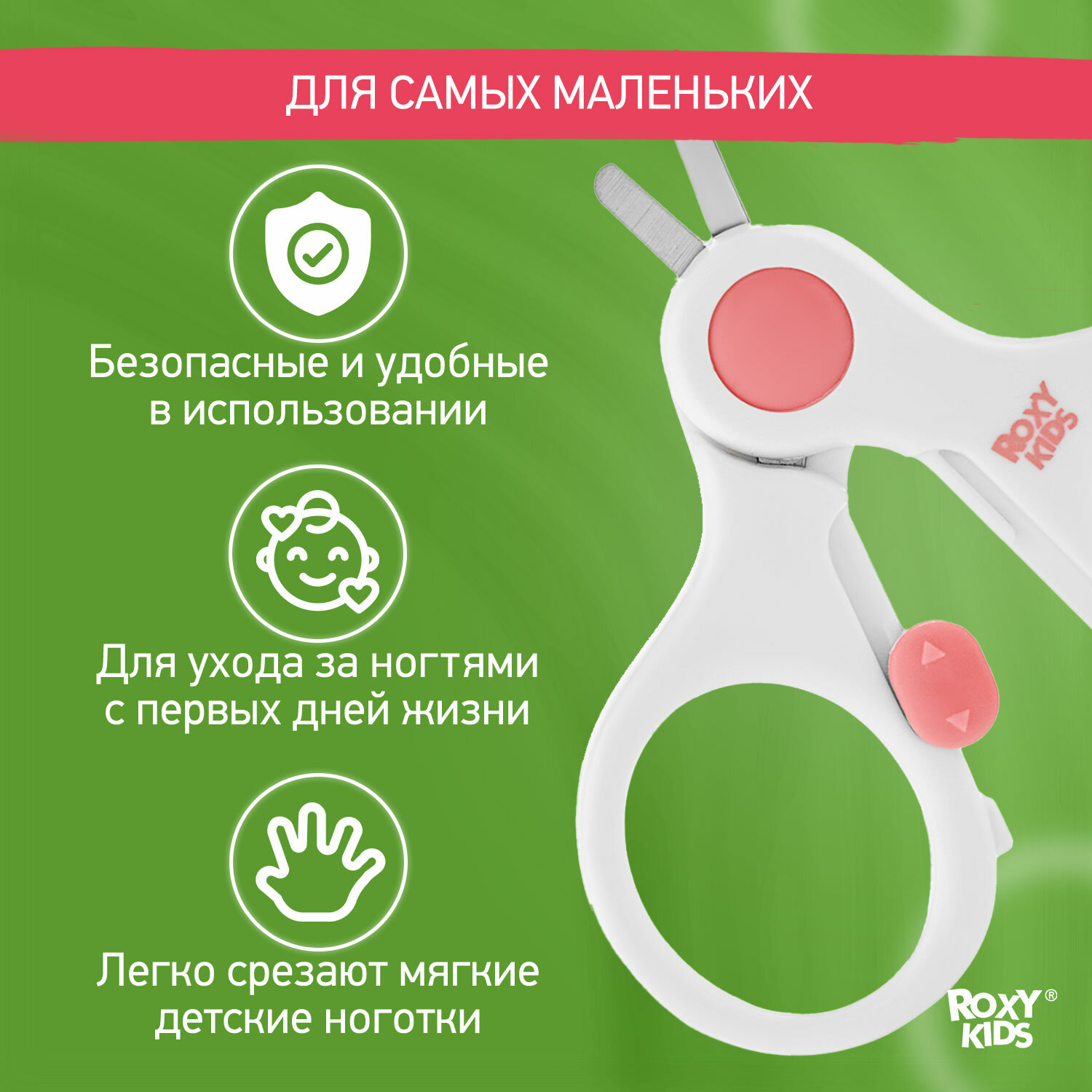 Купить Маникюрные ножницы детские для новорожденных и малышей ROXY-KIDS с замочком и ультратонкими лезвиями, цвет коралловый