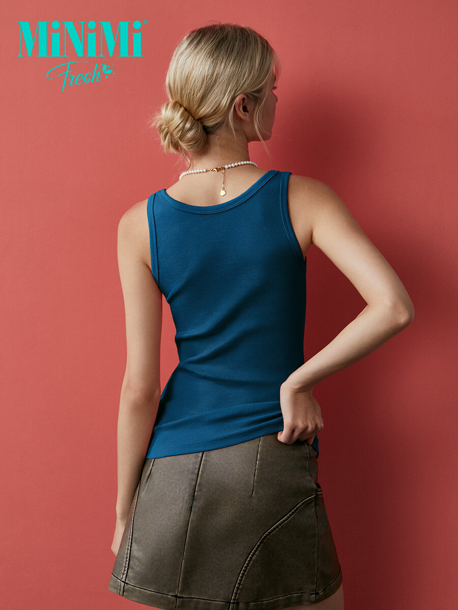 Майка женская MiNiMi BMi_F 1321_01CE топ в рубчик, хлопок, повседневная, цвет Cobalto, размер 42/XS