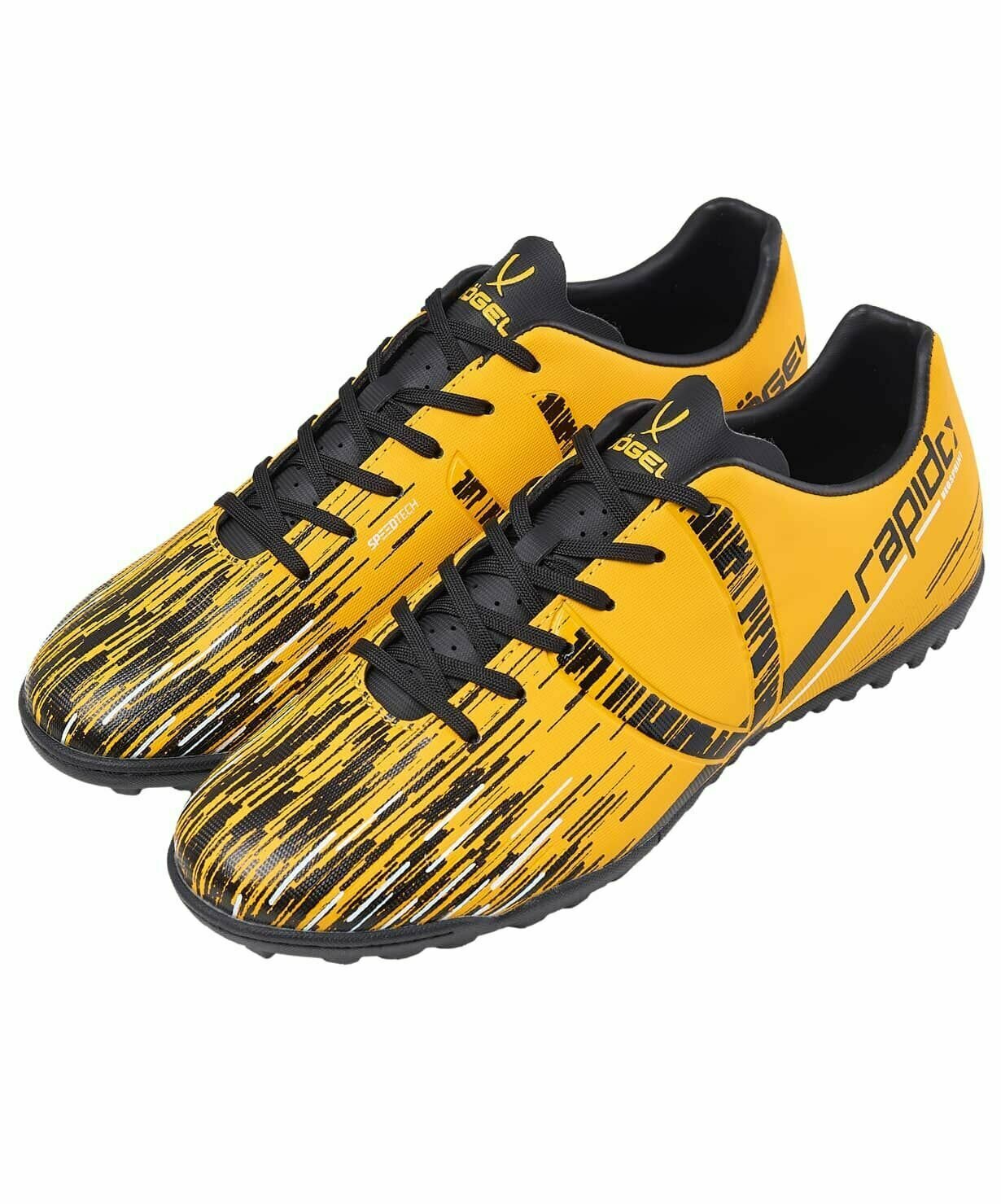 Купить Бутсы Jogel Rapido футбольные. Бутсы сороконожки для футбола. Анатомическая колодка, мягкая стелька. Многошиповые, резиновая подошва для искусственных поверхностей, оптимальное сцепление. Технология Speedtech. Цвет желтый, размер 41