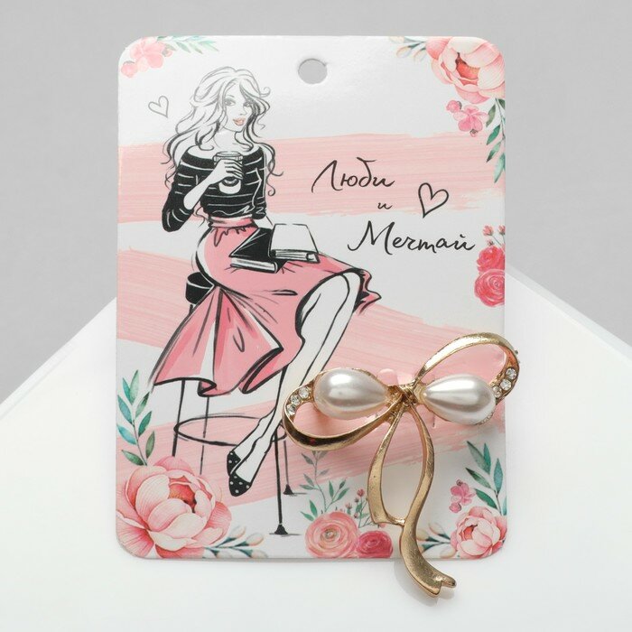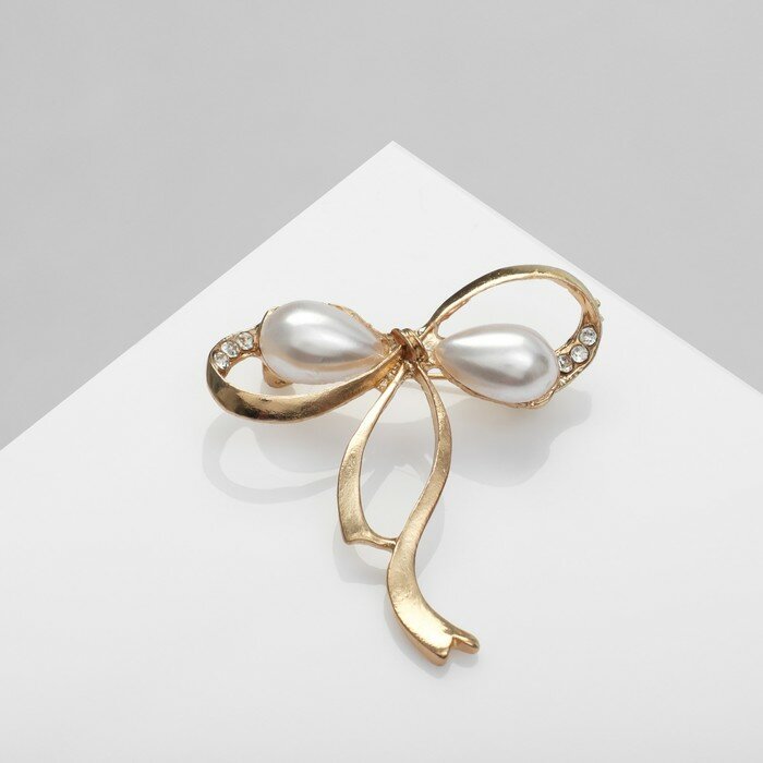 Брошь "Бантик" с жемчужинками. цвет белый в золоте 5114778 интересное: