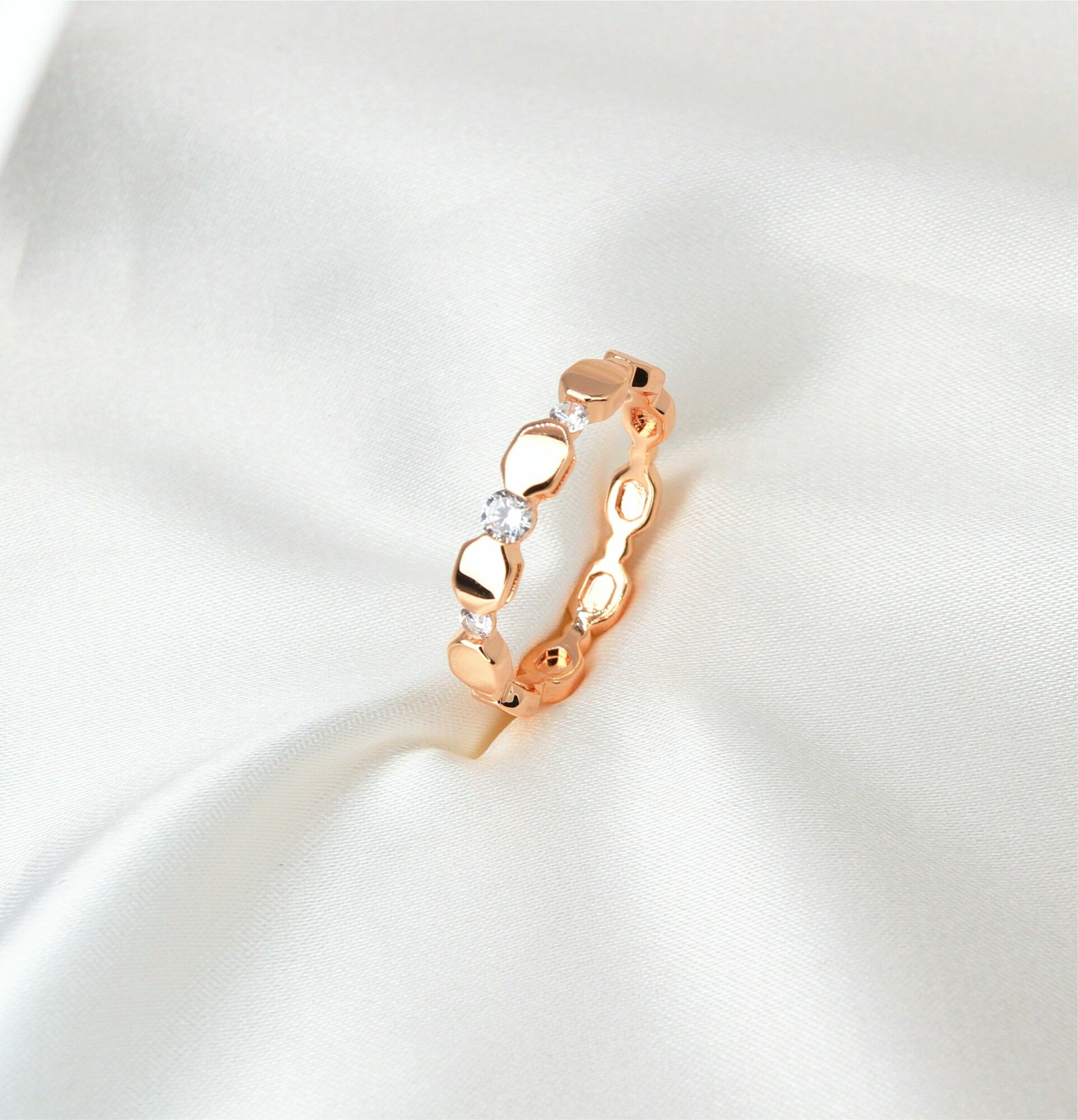 Кольцо тонкое с фианитами, XUPING JEWELRY, гальваническая позолота 18К