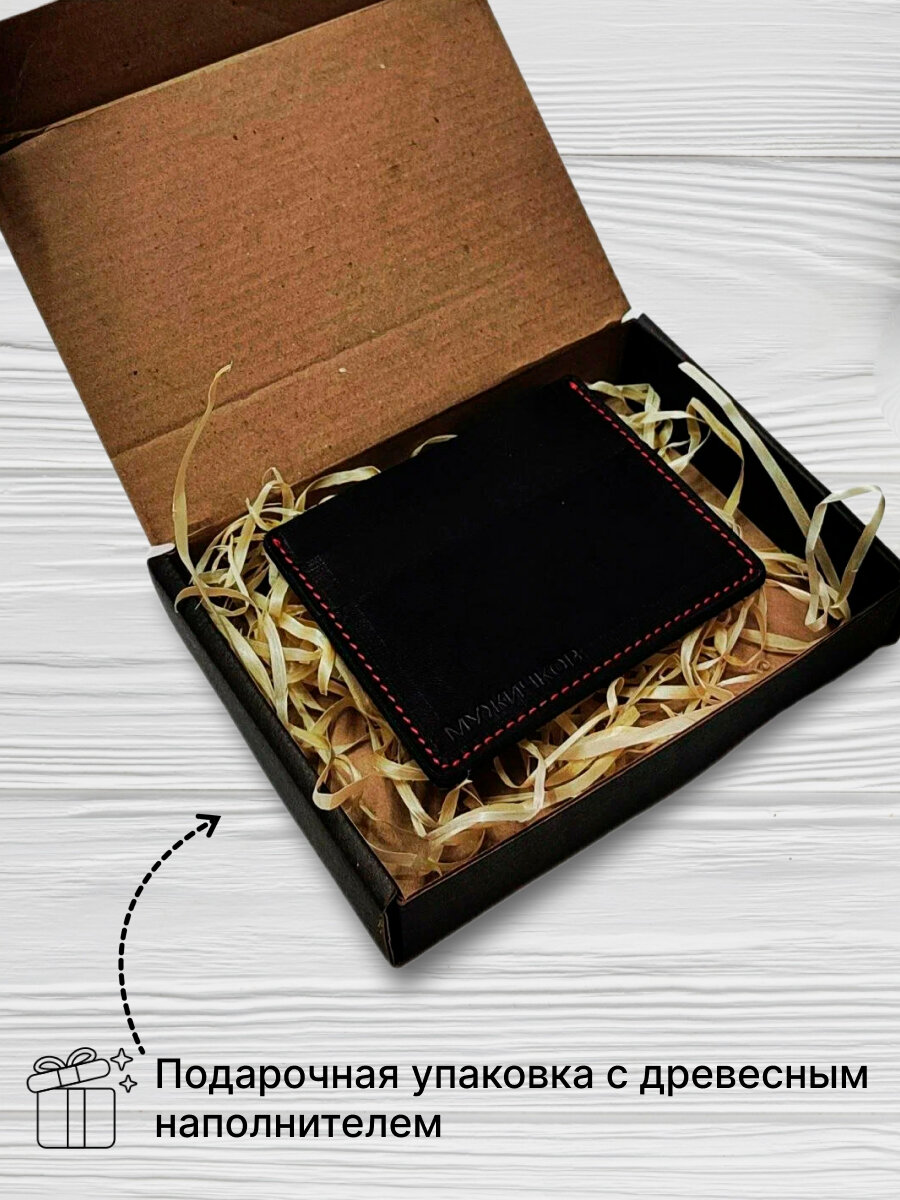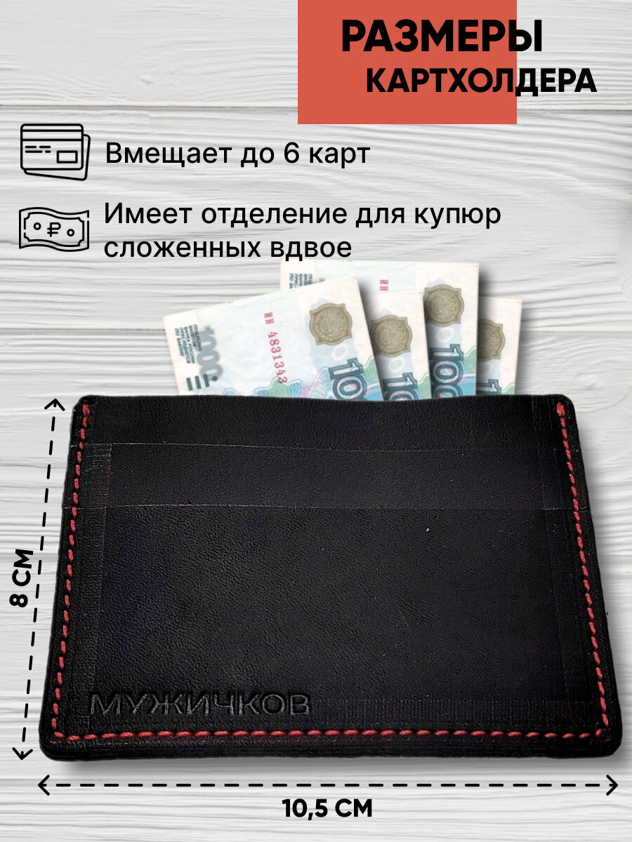 Картхолдер Мужичков из натуральной кожи, черный с красной прострочкой интересное: