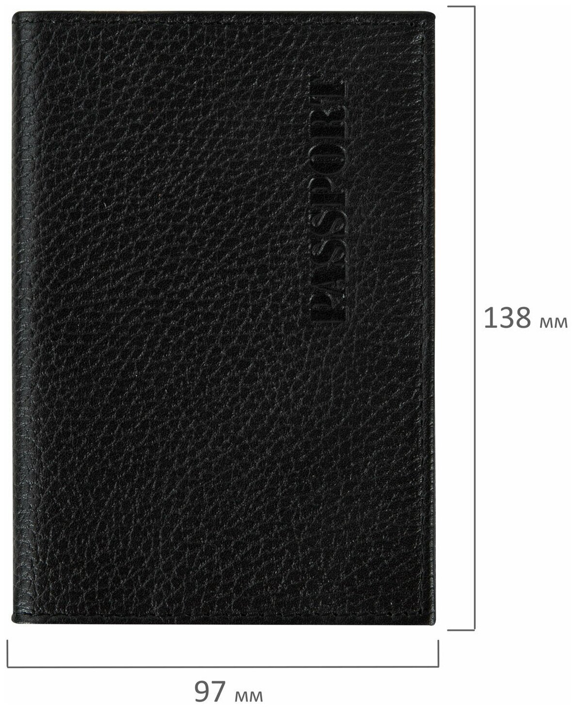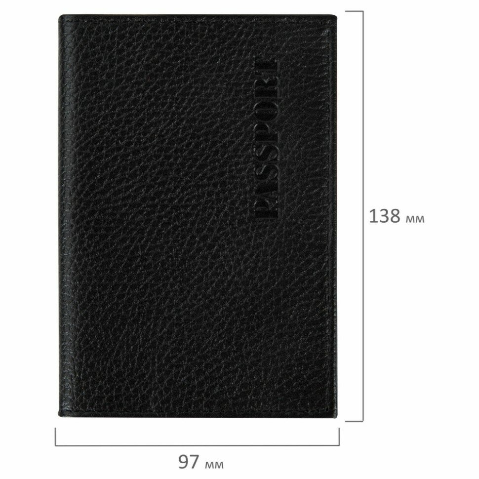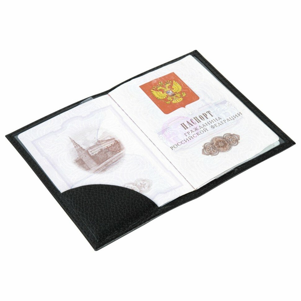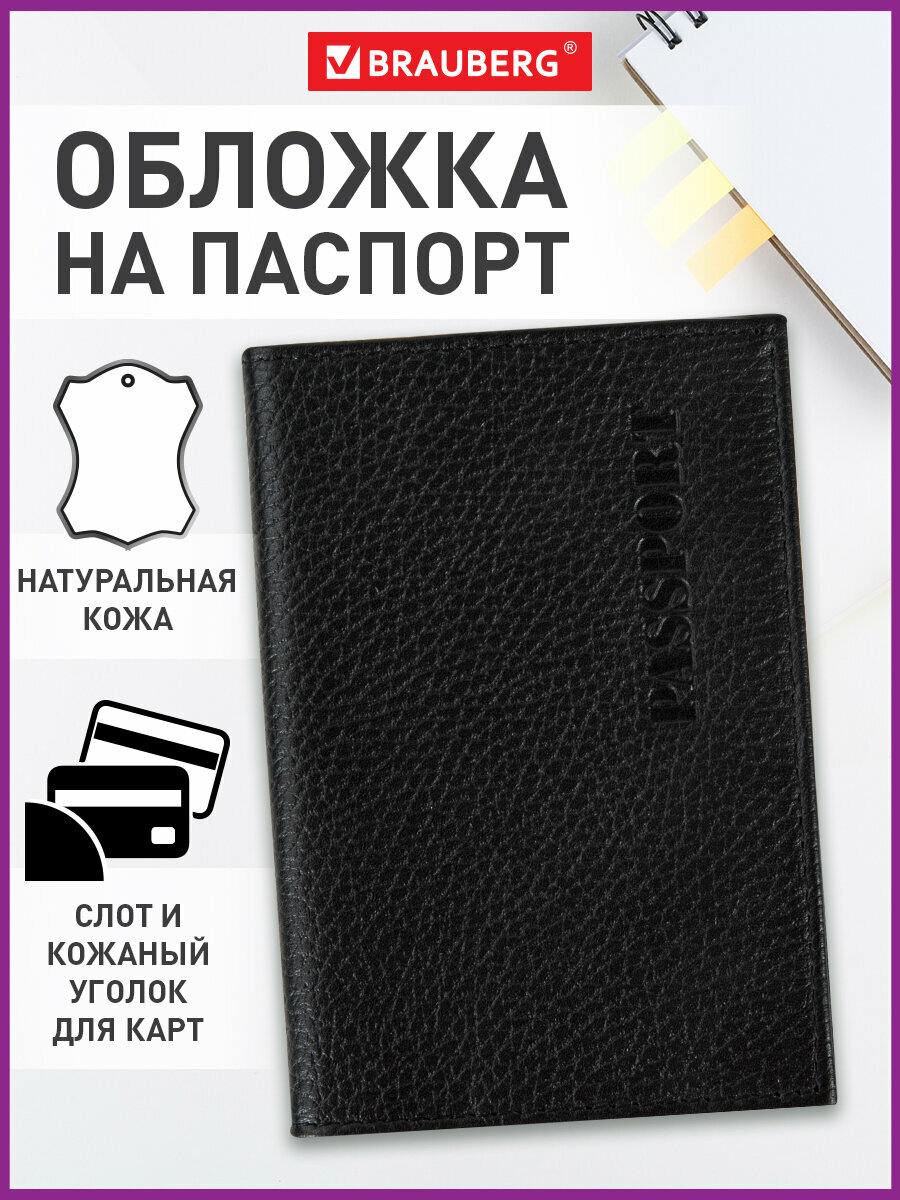 Обложка (чехол) на паспорт / для документов натуральная кожа флоттер, Passport, кожаный уголок, черная, Brauberg интересное: