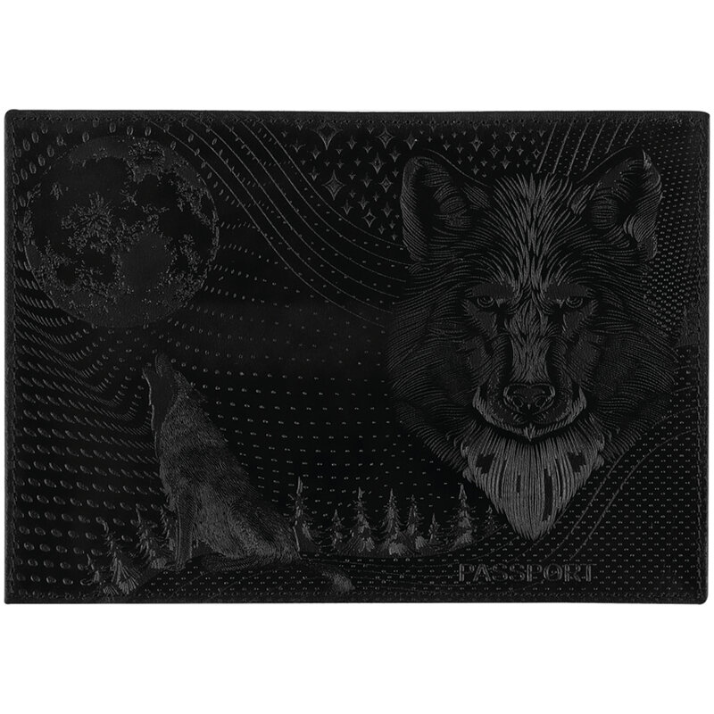 Обложка для паспорта OfficeSpace "Волк" кожа, тиснение, черная (339855) интересное: