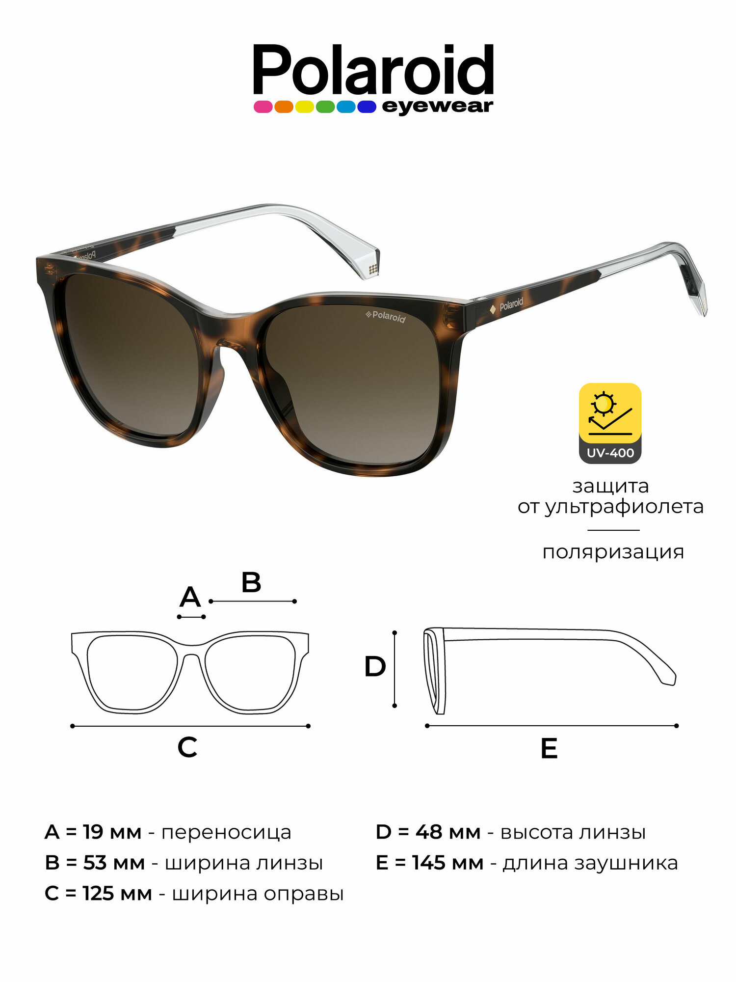 Женские солнцезащитные очки Polaroid PLD 4059/S 086 LA, цвет: коричневый, цвет линзы: коричневый, квадратные, ацетат интересное: