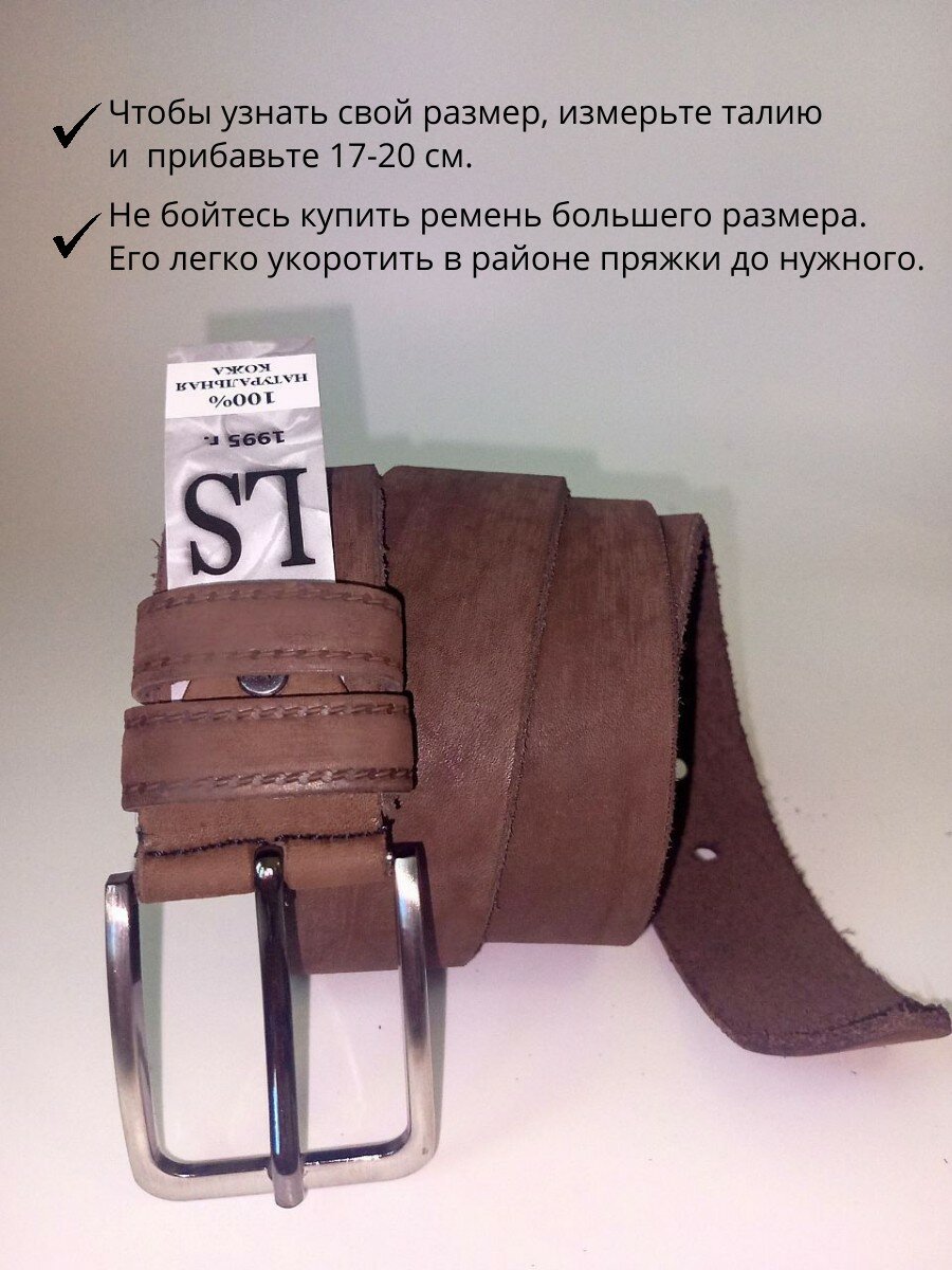 СохранитьРемень мужской кожаный для джинс, ширина 4 см, коричневый без рисунка 130 см интересное: