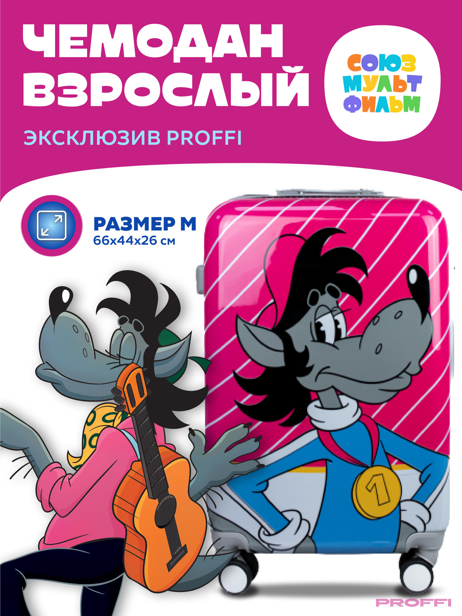 Купить Чемодан пластиковый Ну погоди волк 4х колесный M