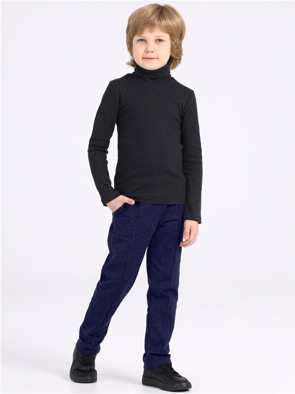 Брюки для мальчика школьные трикотажные на резинке Апрель 1ПББ3460258н/1386/*/5245/*/*/*/* синий,серый 84-158