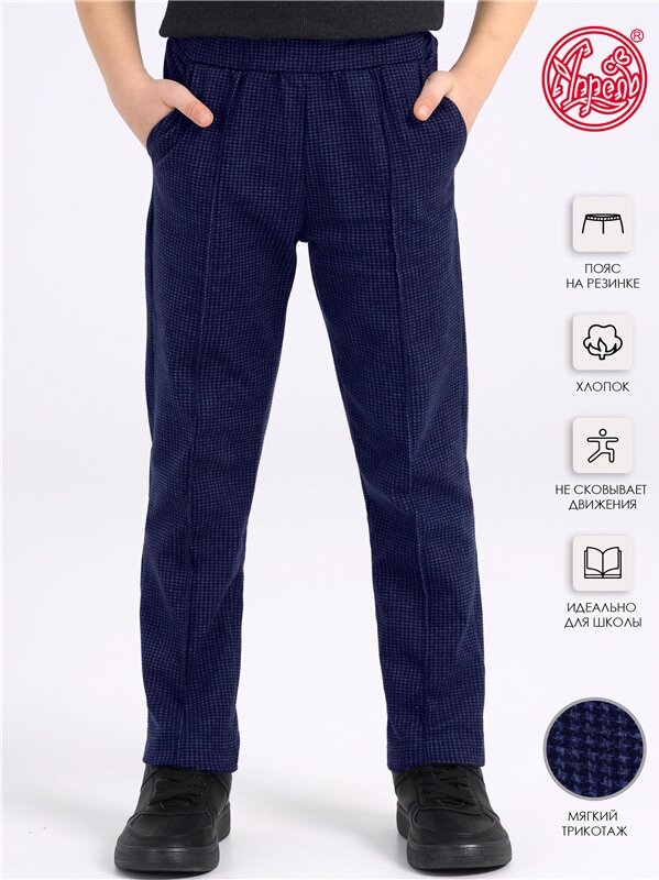 Брюки для мальчика школьные трикотажные на резинке Апрель 1ПББ4206258/1386/1903/*/*/*/*/* синий 122-62