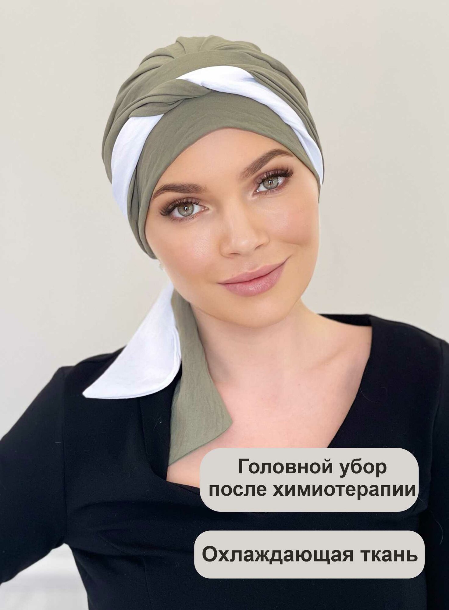 Купить Тюрбан после химиотерапии Lola оливковый-белый