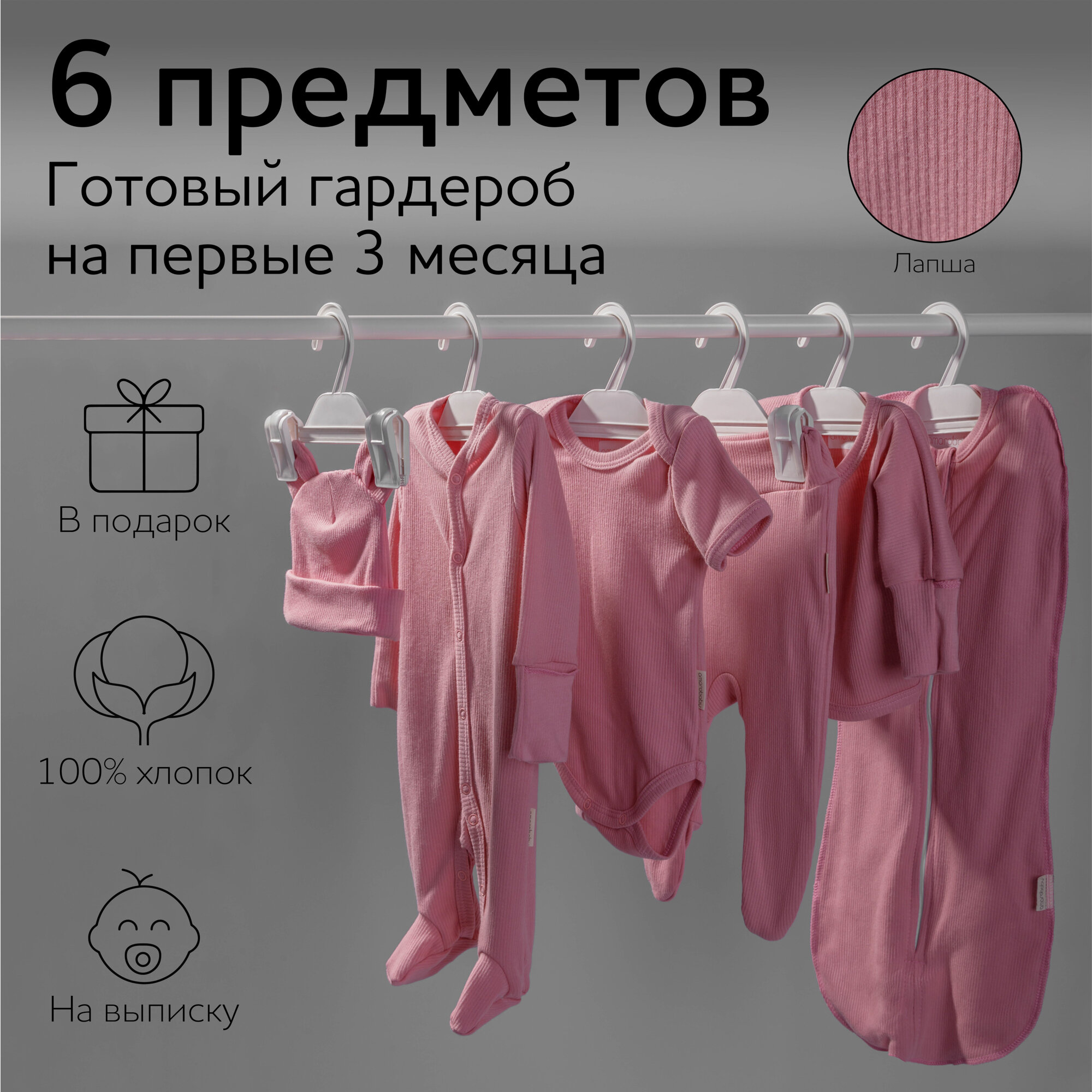 Комплект на выписку детский Amarobaby Newborn 6 предметов , розовый, размер 62-68